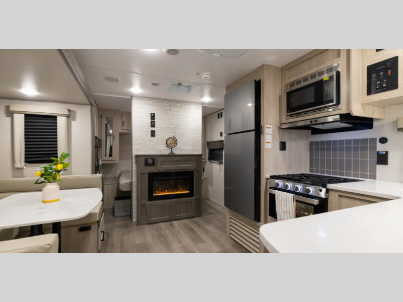 Enjoy home-style cooking on the three burner range, ideal for preparing meals after a day on the trails.
