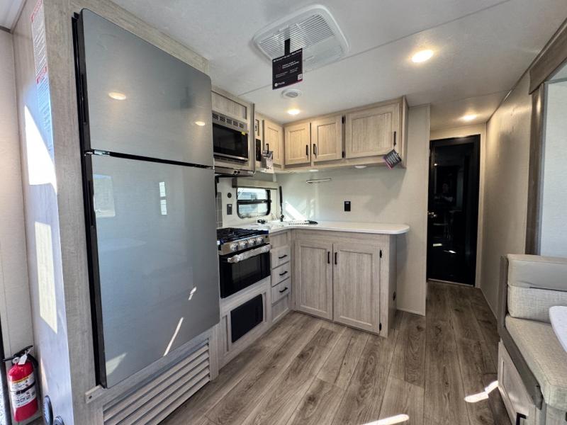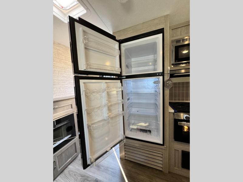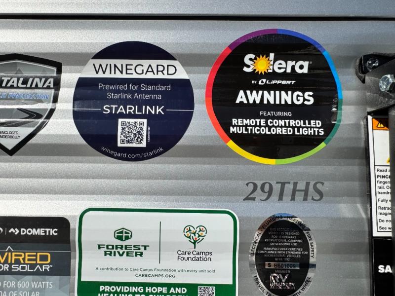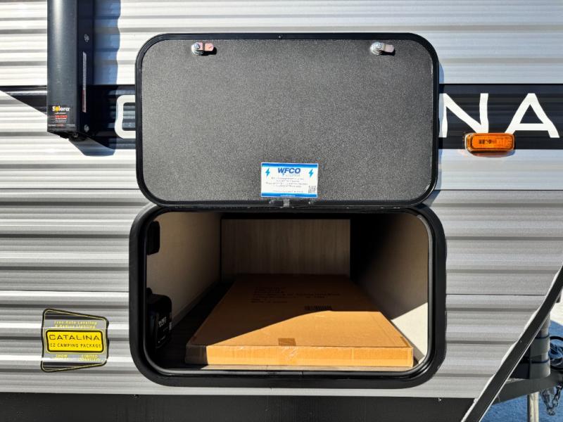 Is the Catalina Trail Blazer 29THS off-grid ready? Absolutely. It comes with Universal Solar Prep, a battery disconnect, and a 12V GE refrigerator, perfect for boondocking adventures.