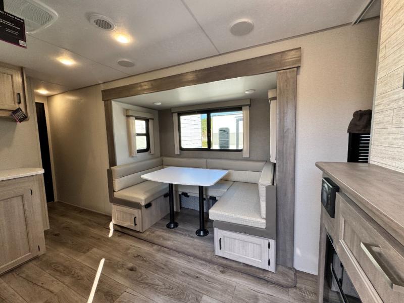 Why buy the 2026 Catalina Trail Blazer 29THS? It is engineered for thrill-seekers who refuse to compromise on comfort. Weighing in at 7,578 lbs, it is towable by many half-ton and three-quarter-ton trucks. The 29THS floorplan sleeps 6 comfortably, offering a private queen bedroom and a spacious U-shaped dinette in the slide-out.