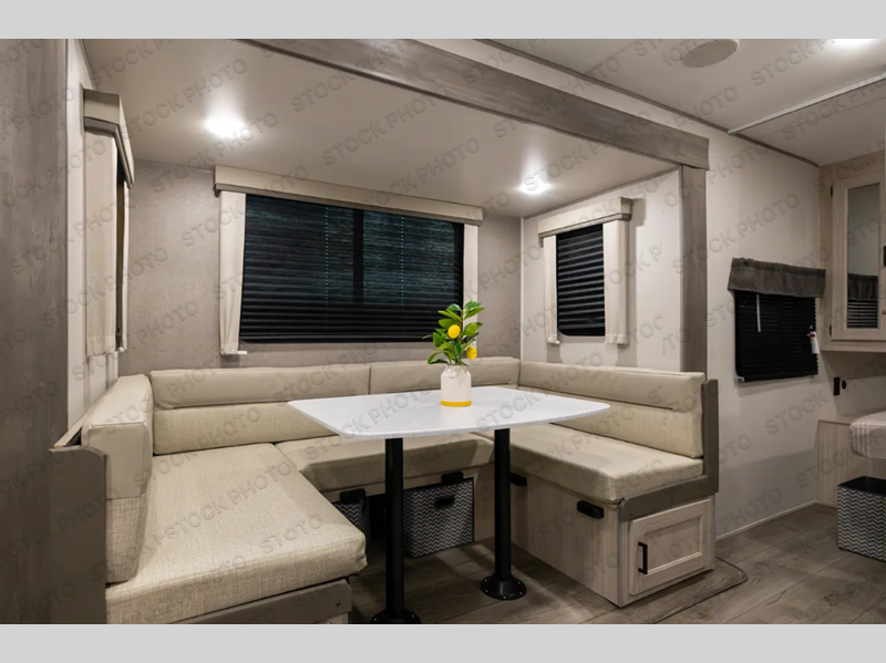 You're going to love camping in this dual entry toy hauler! The 11' garage can be shut off from the rest of the unit if your guests want a little privacy, and you can choose the optional party deck to the ramp door for more living space. The full bath includes a tub/shower, a medicine cabinet, plus a shower skylight to let natural light in. Head to the main living area to dine around the U-shaped dinette slide, or call it a night in the front bedroom with a queen bed. And you'll find plenty of storage space for your belongings, including overhead cabinets, dual bedroom wardrobes, plus exterior storage!