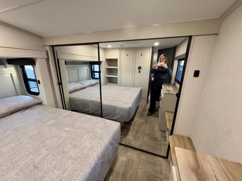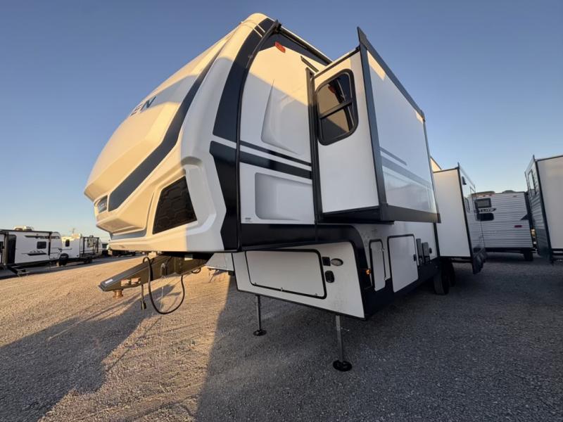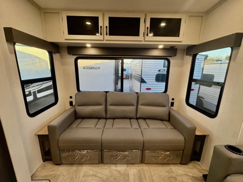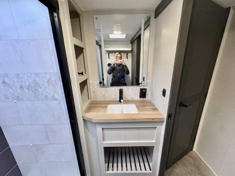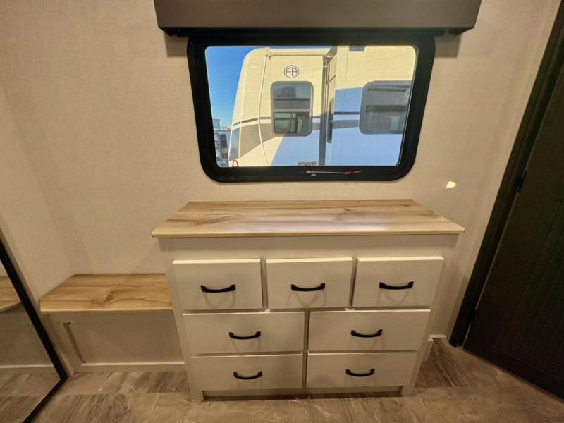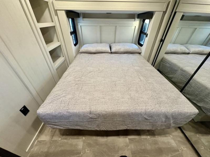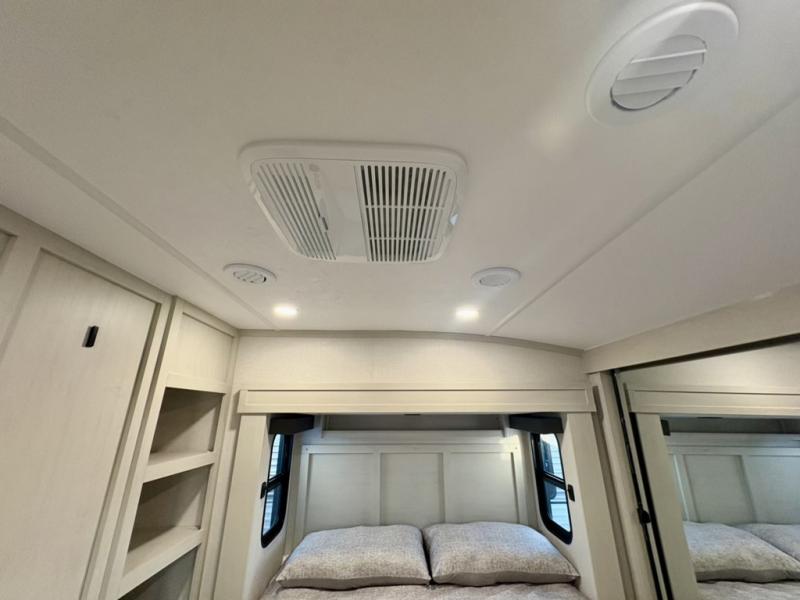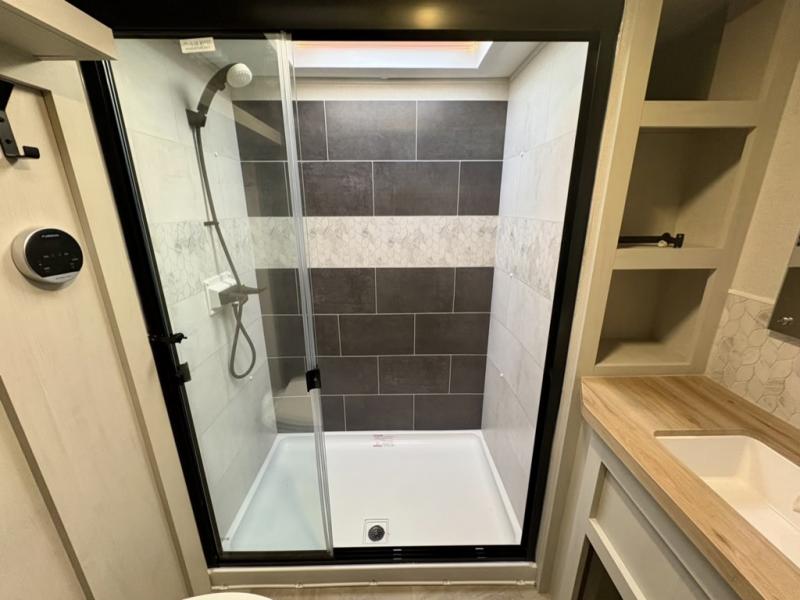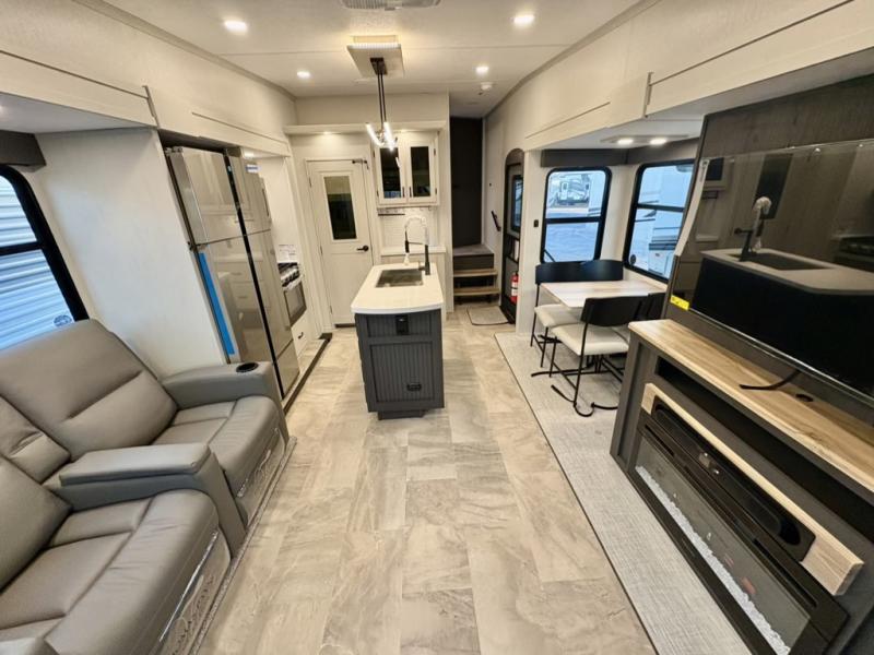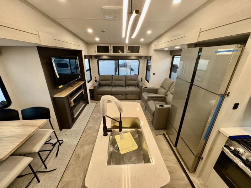 Each Chaparral mid-profile fifth wheel by Coachmen is designed with residential features, loads of storage space, and roomy bedroom suites to make you feel right at home. The durable construction means you can enjoy your RV for years to come. There's 6X double Azdel aluminum cage sidewall system, Weather Shield+ technology, and Tri-Tex powder coated frame technology that will help extend your camping season. Each model includes a Winegard Air 360+ HDTV/radio dome antenna to help keep you connected as you camp, slow rise blackout roller night shades, a new 16 cu. ft. side-by-side stainless glass 12V refrigerator, and a modern electric fireplace to make your space cozy. There is also a large transom window in the kitchen, a modern high-rise faucet, LED motion sensor lights in the bathroom, plus a full-size shower with glass doors and a seat. Now that's what I call luxury! Choose a Chaparral fifth wheel today!