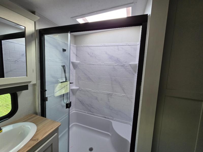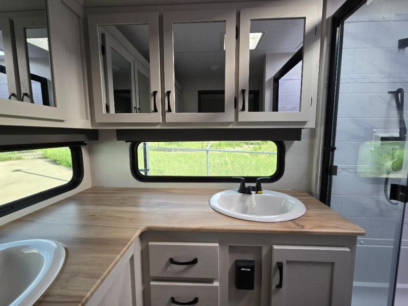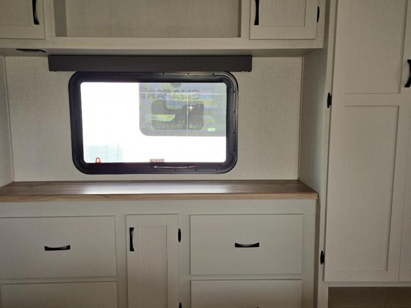 Each Chaparral mid-profile fifth wheel by Coachmen is designed with residential features, loads of storage space, and roomy bedroom suites to make you feel right at home. The durable construction means you can enjoy your RV for years to come. There's 6X double Azdel aluminum cage sidewall system, Weather Shield+ technology, and Tri-Tex powder coated frame technology that will allow you to camp year around. Each model includes a Winegard Air 360+ HDTV/radio dome antenna to help keep you connected as you camp, slow rise blackout roller night shades, a new 16 cu. ft. side-by-side stainless glass 12V refrigerator, and a modern electric fireplace to make your space cozy. There is also a large transom window in the kitchen, a modern high-rise faucet, LED motion sensor lights in the bathroom, plus a full-size shower with glass doors and a seat. Now that's what I call luxury! Choose a Chaparral fifth wheel today!