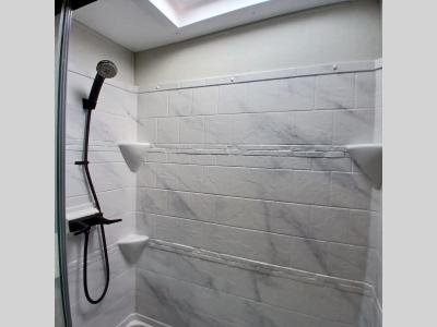 Each Chaparral mid-profile fifth wheel by Coachmen is designed with residential features, loads of storage space, and roomy bedroom suites to make you feel right at home. The durable construction means you can enjoy your RV for years to come. There's 6X double Azdel aluminum cage sidewall system, Weather Shield+ technology, and Tri-Tex powder coated frame technology that will allow you to camp year around. Each model includes a Winegard Air 360+ HDTV/radio dome antenna to help keep you connected as you camp, slow rise blackout roller night shades, a new 16 cu. ft. side-by-side stainless glass 12V refrigerator, and a modern electric fireplace to make your space cozy. There is also a large transom window in the kitchen, a modern high-rise faucet, LED motion sensor lights in the bathroom, plus a full-size shower with glass doors and a seat. Now that's what I call luxury! Choose a Chaparral fifth wheel today!