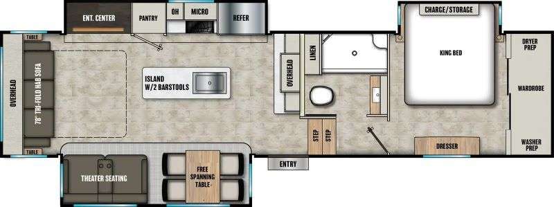 What I liked most: Master bedroom has air-conditioning unit right in it for extra cooling. Large walk-in shower with seat and tile design in the surround. Large skylight in shower let's and lots of natural light. Sink has a stylish design. Kitchen has a full normal hinge door plenty of storage pantry.