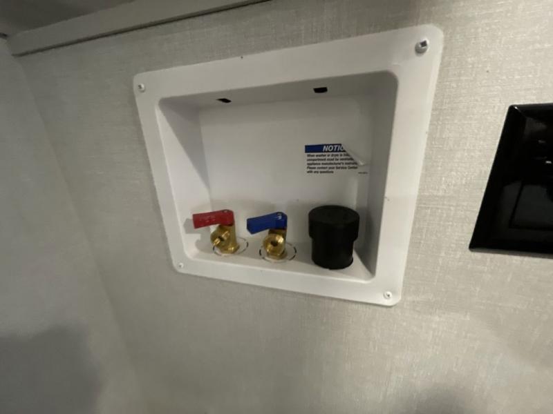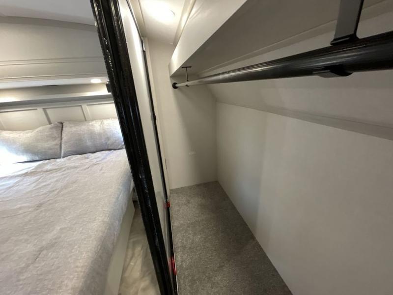 What could be better than a camping trip with family and friends? A camping trip in this spacious fifth wheel that can sleep eight people comfortably! There is a private middle bunkhouse with double-size bunks and overhead cabinets to store belongings, and a front private bedroom with a queen bed slide out. You'll find storage space in the large bedroom wardrobe that also includes washer and dryer prep if you plan to go full-time or camp for longer periods of time. Everyone can meet in the main living area that includes dual opposing slides, theatre seating, a free-spanning table, plus a tri-fold hide-a-bed sofa! And we didn't even mention the fully-equipped kitchen with stainless steel appliances, an extra deep single basin sink, plus tons of counter space with overhead cabinets for more storage!