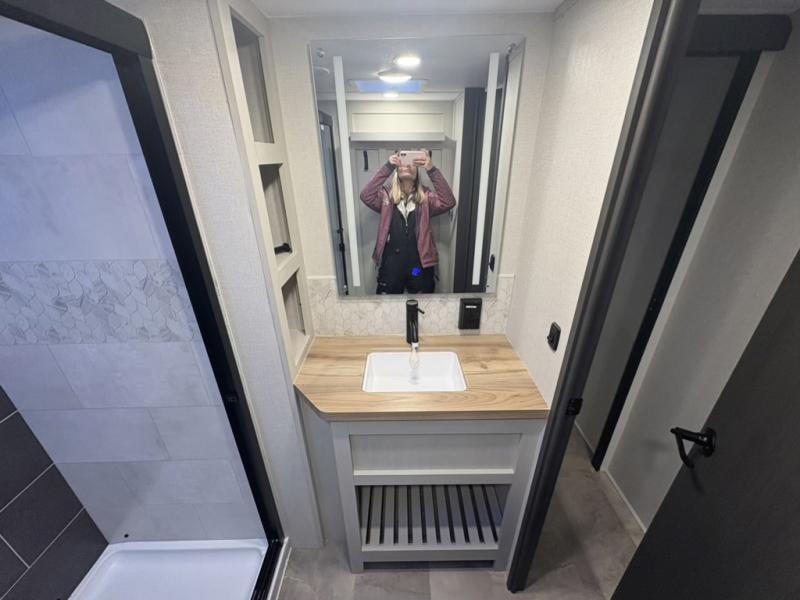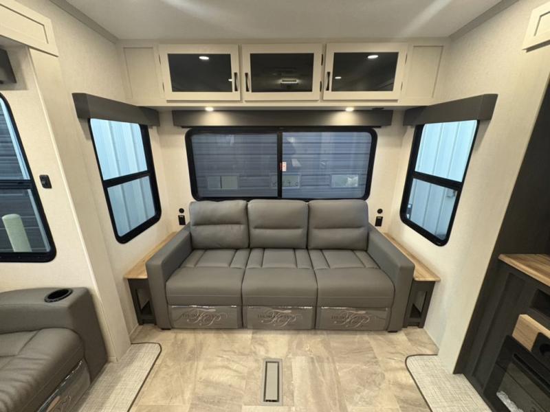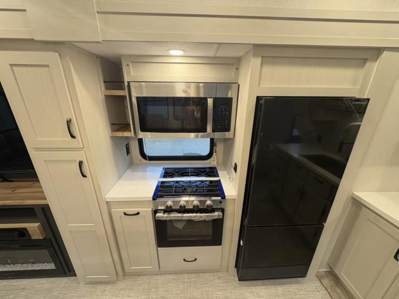 Each Chaparral mid-profile fifth wheel by Coachmen is designed with residential features, loads of storage space, and roomy bedroom suites to make you feel right at home. The durable construction means you can enjoy your RV for years to come. There's 6X double Azdel aluminum cage sidewall system, Weather Shield+ technology, and Tri-Tex powder coated frame technology that will help extend your camping season. Each model includes a Winegard Air 360+ HDTV/radio dome antenna to help keep you connected as you camp, slow rise blackout roller night shades, a new 16 cu. ft. side-by-side stainless glass 12V refrigerator, and a modern electric fireplace to make your space cozy. There is also a large transom window in the kitchen, a modern high-rise faucet, LED motion sensor lights in the bathroom, plus a full-size shower with glass doors and a seat. Now that's what I call luxury! Choose a Chaparral fifth wheel today!