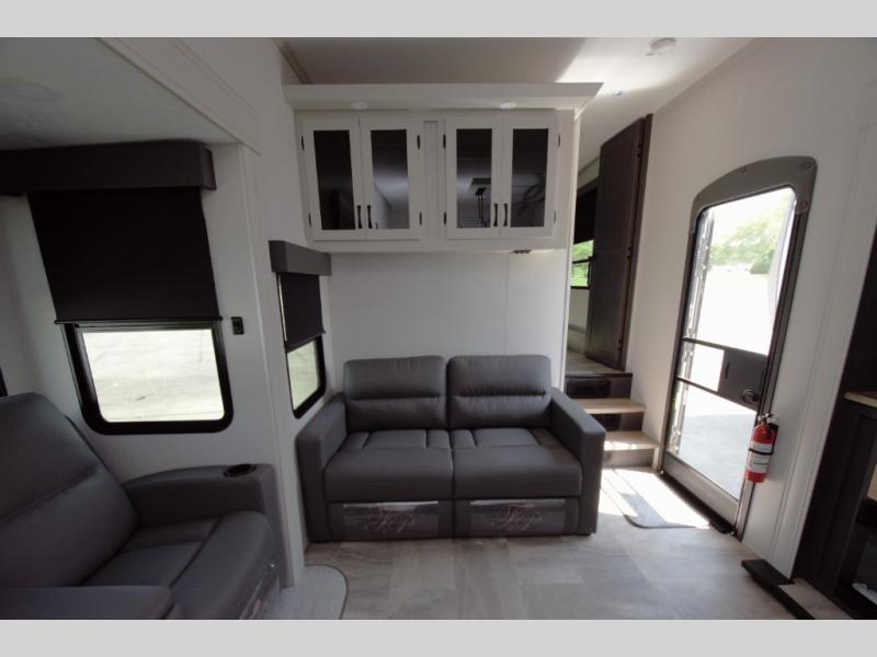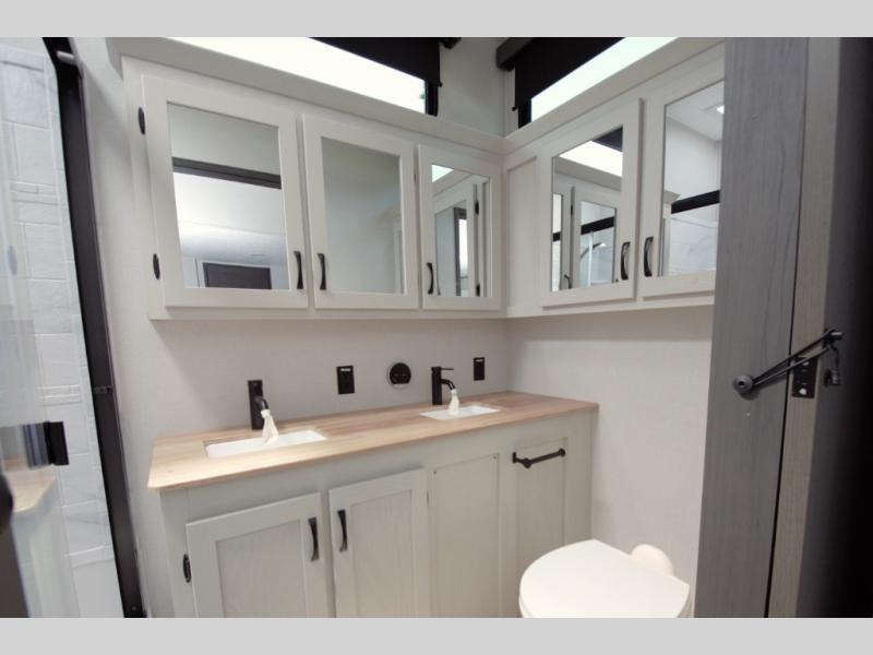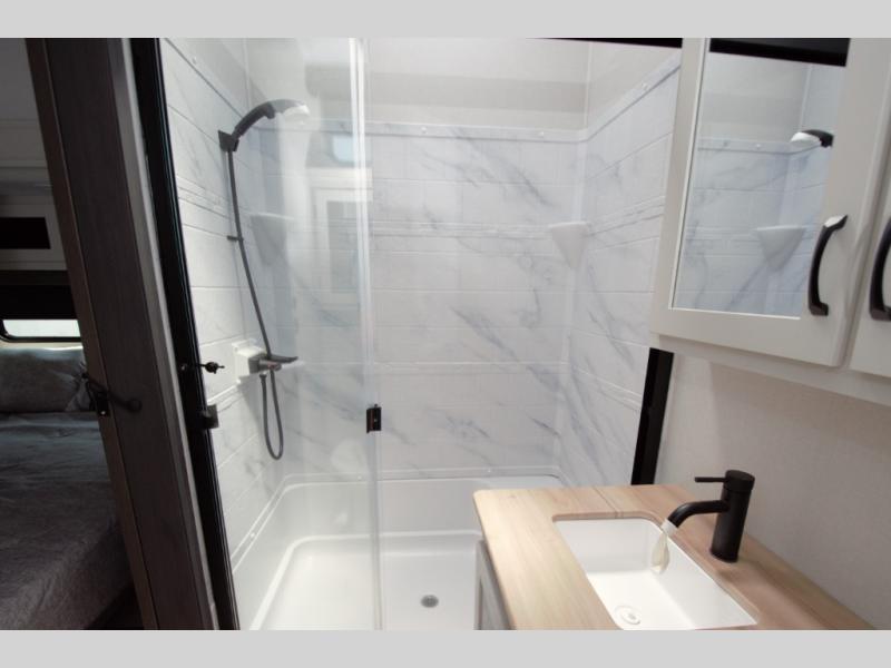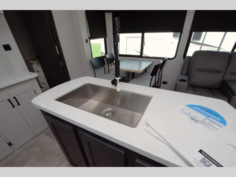 From the high rise kitchen faucet to the full size shower with glass doors, the Coachmen Chaparral 375BAF delivers premium comfort on the road.