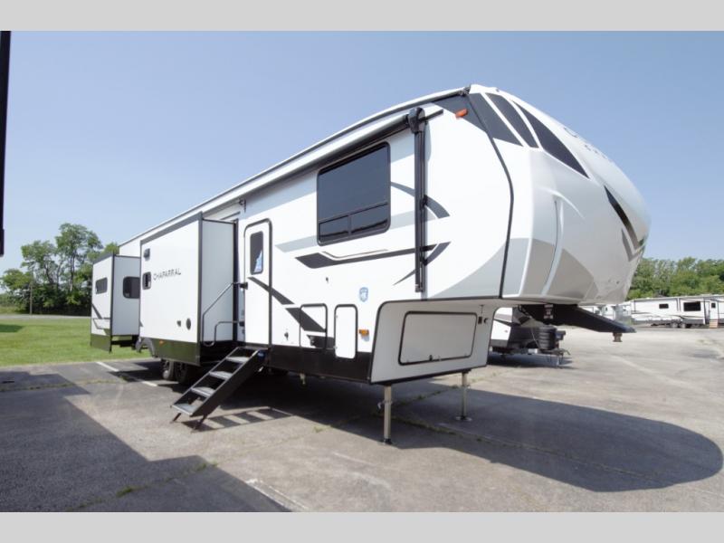 Constructed with Azdel sidewalls and Weather Shield Plus protection, the Chaparral is ready for all seasons. Includes Tri Tex powder coated frame, Winegard Air 360 plus HDTV antenna, blackout roller shades, and LED motion lighting.