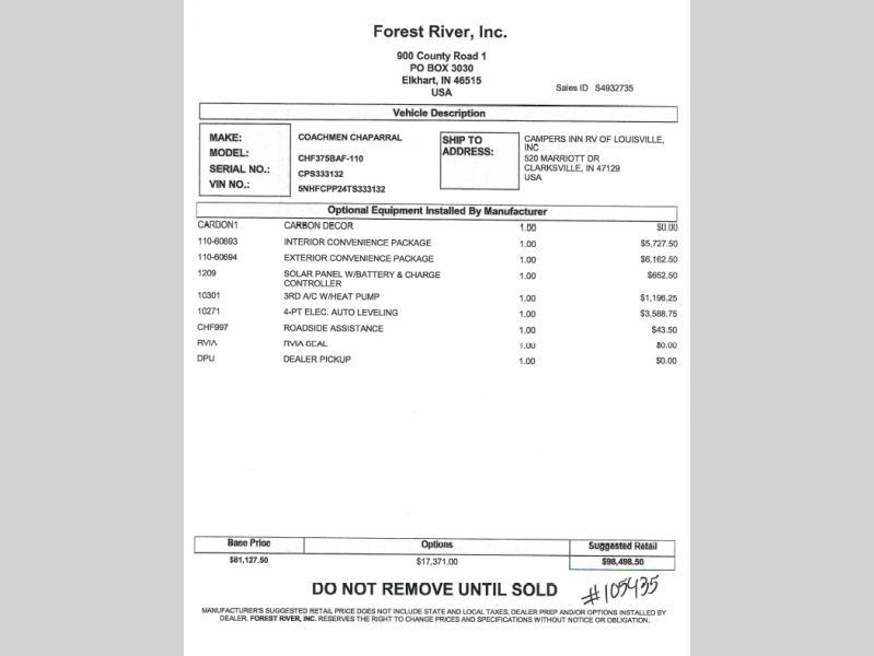 Call Campers Inn RV of South Louisville 502-955-7484 for details