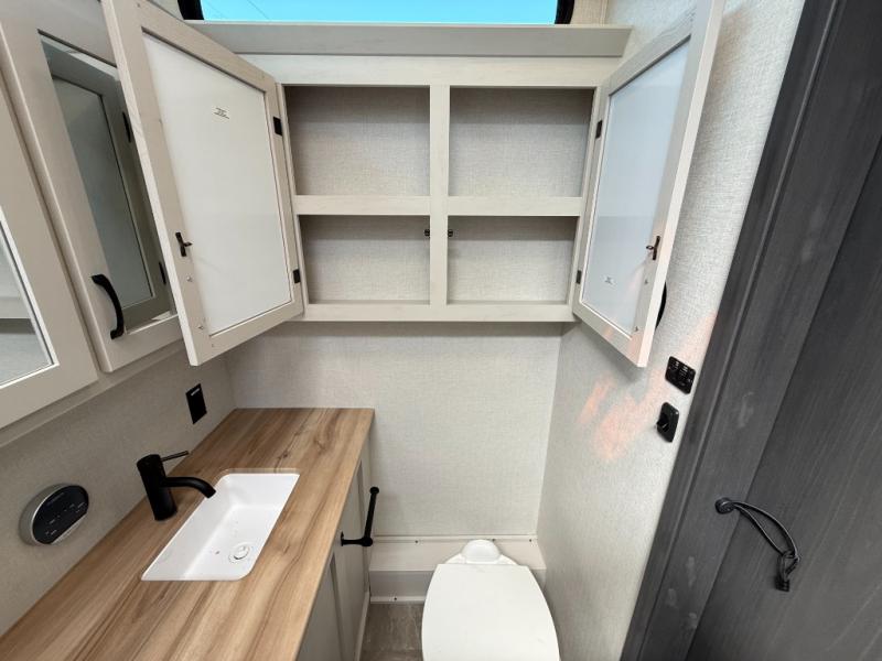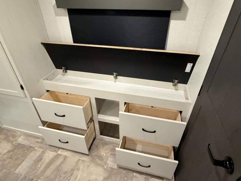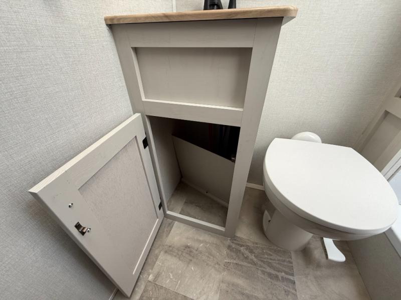 LED lighting: interior (motion-sensor lights in key areas), under slide bed lights, sewer hose hookup lights.