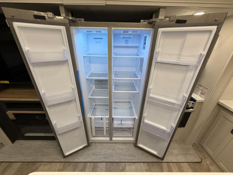 16 cu. ft. side-by-side stainless glass 12V refrigerator with smart touch functions.