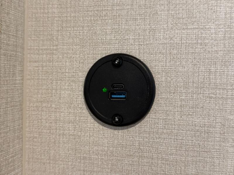 USB / USB-C charging ports, and both 12V & 110V outlets in bedrooms.