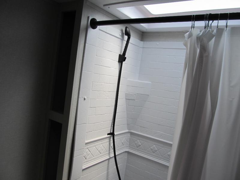 A front bunkhouse model with a private full bath, how nice! The children will love bringing along their friends with this spacious Chaparral fifth wheel. It even has a loft for added space or storage. The front bunk room features a cube sofa with a 30" x 62" bunk overhead, and 30" x 74" bunks off to the side. The full bath is located within the bunkhouse space and features a tub/shower, toilet and sink. There is also wardrobe space for clothing. Down on the main level, the combined kitchen and living area features one large slide including a theater seat and free spanning table for four. A nice center island features a sink so you can visit while prepping dinner or doing the dishes. There is also a tri-fold sofa in this space for seating and added sleeping. The rear features a master bedroom and second full bath including a king bed slide out! The full rear bath includes a vanity with two sinks, a toilet and a large shower with seat. The loft is above the rear master bedroom area and could sleep one more, or be used for added storage!