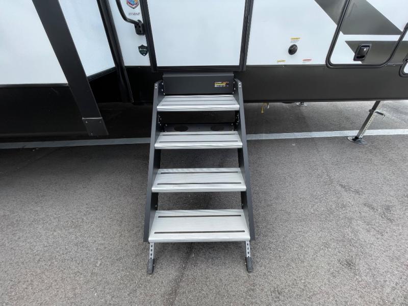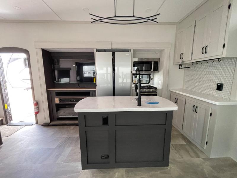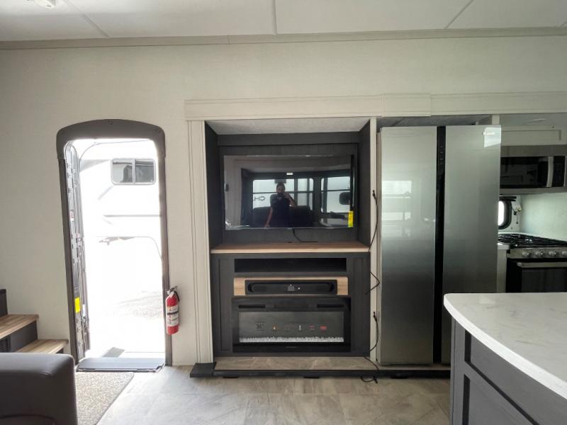 Each Chaparral mid-profile fifth wheel by Coachmen is designed with residential features, loads of storage space, and roomy bedroom suites to make you feel right at home. The durable construction means you can enjoy your RV for years to come. There's 6X double Azdel aluminum cage sidewall system, Weather Shield+ technology, and Tri-Tex powder coated frame technology that will help extend your camping season. Each model includes a Winegard Air 360+ HDTV/radio dome antenna to help keep you connected as you camp, slow rise blackout roller night shades, a new 16 cu. ft. side-by-side stainless glass 12V refrigerator, and a modern electric fireplace to make your space cozy. There is also a large transom window in the kitchen, a modern high-rise faucet, LED motion sensor lights in the bathroom, plus a full-size shower with glass doors and a seat. Now that's what I call luxury! Choose a Chaparral fifth wheel today!