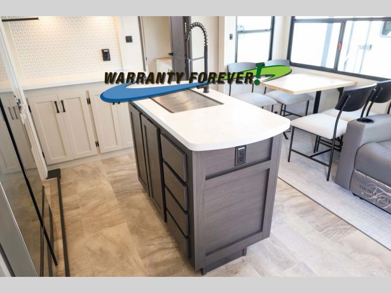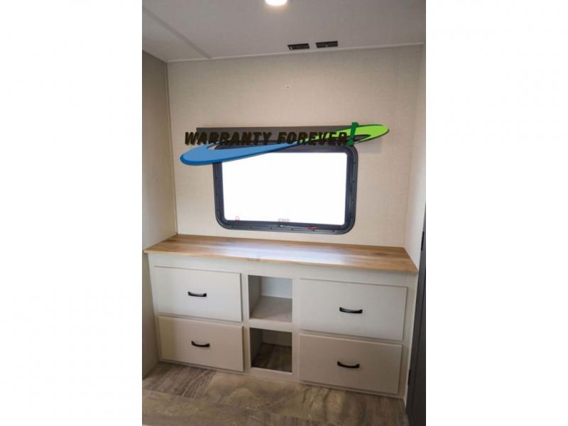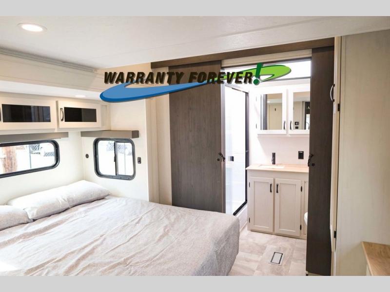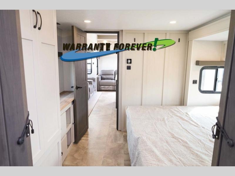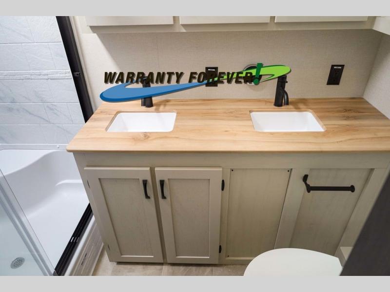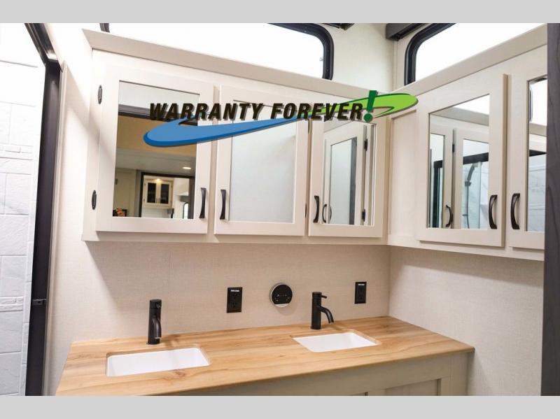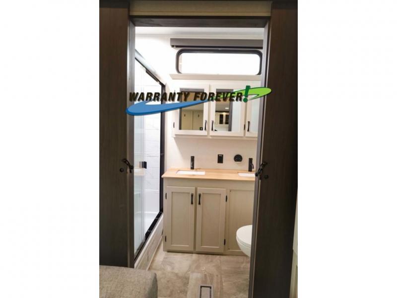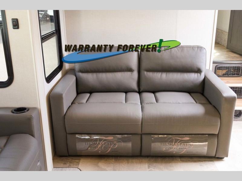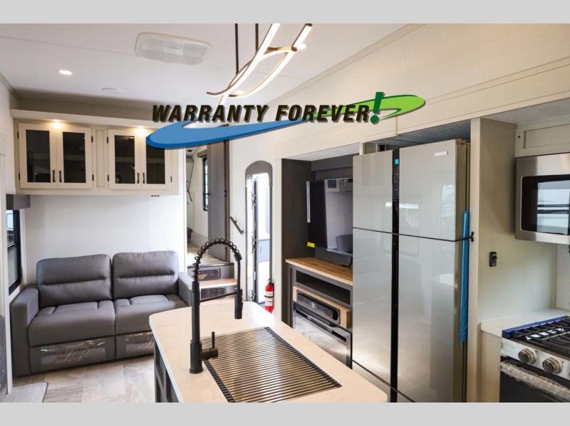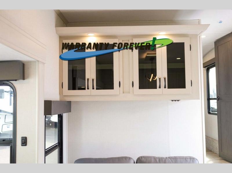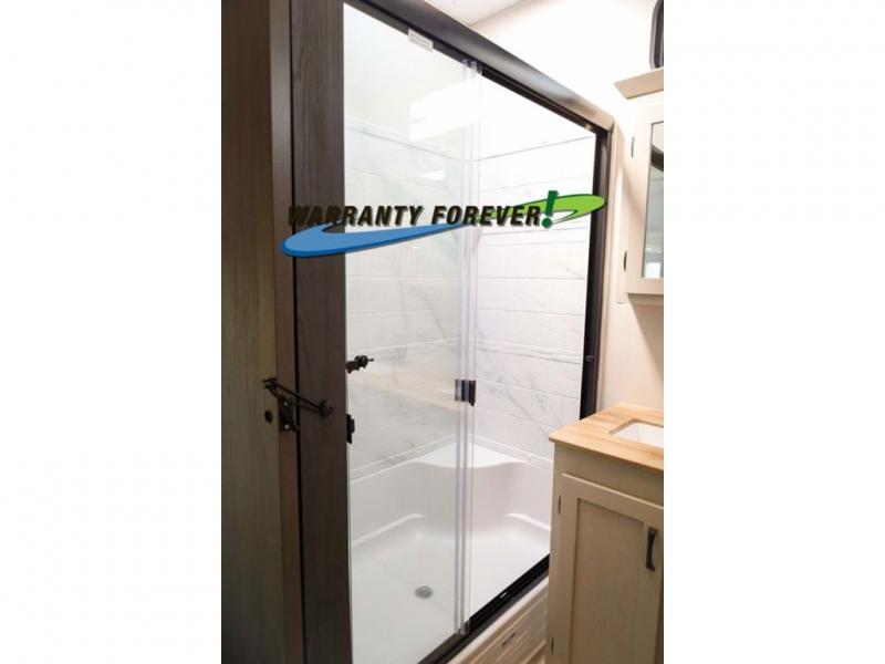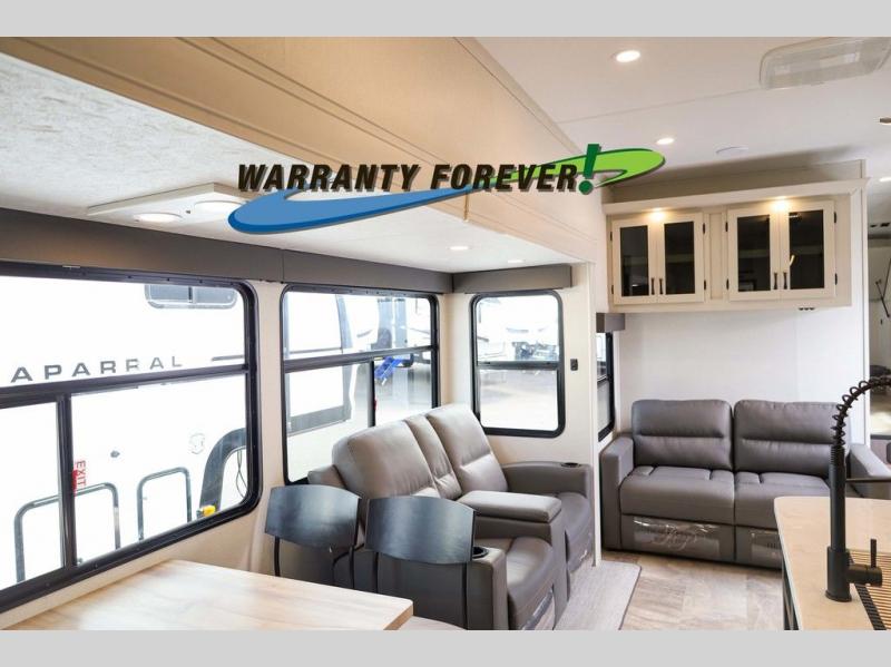 Each Chaparral mid-profile fifth wheel by Coachmen is designed with residential features, loads of storage space, and roomy bedroom suites to make you feel right at home. The durable construction means you can enjoy your RV for years to come. There's 6X double Azdel aluminum cage sidewall system, Weather Shield+ technology, and Tri-Tex powder coated frame technology that will help extend your camping season. Each model includes a Winegard Air 360+ HDTV/radio dome antenna to help keep you connected as you camp, slow rise blackout roller night shades, a new 16 cu. ft. side-by-side stainless glass 12V refrigerator, and a modern electric fireplace to make your space cozy. There is also a large transom window in the kitchen, a modern high-rise faucet, LED motion sensor lights in the bathroom, plus a full-size shower with glass doors and a seat. Now that's what I call luxury! Choose a Chaparral fifth wheel today!