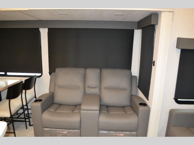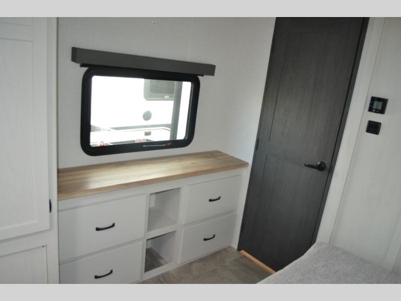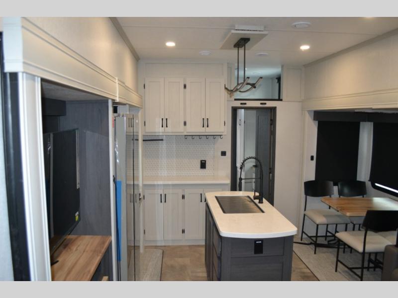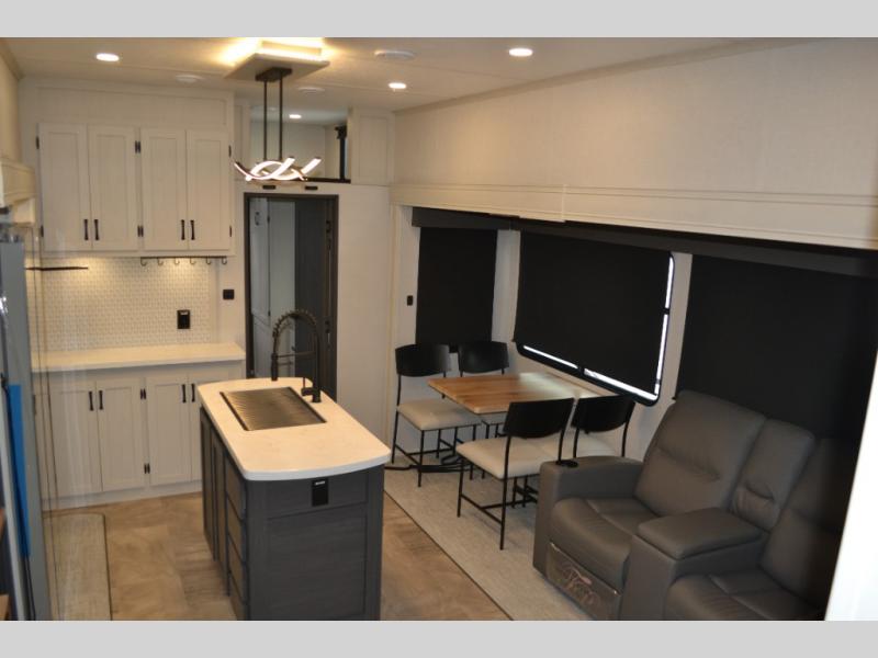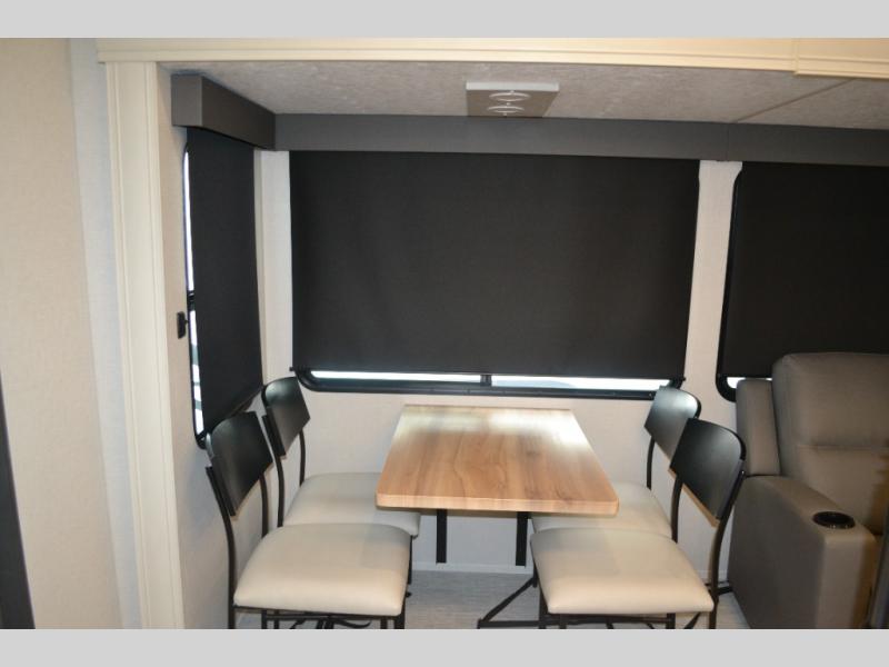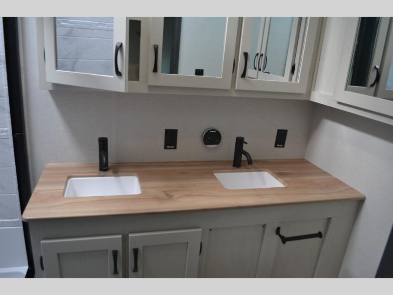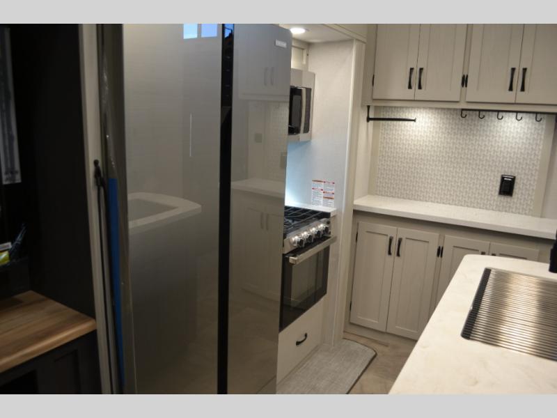 Each Chaparral mid-profile fifth wheel by Coachmen is designed with residential features, loads of storage space, and roomy bedroom suites to make you feel right at home. The durable construction means you can enjoy your RV for years to come. There's 6X double Azdel aluminum cage sidewall system, Weather Shield+ technology, and Tri-Tex powder coated frame technology that will help extend your camping season. Each model includes a Winegard Air 360+ HDTV/radio dome antenna to help keep you connected as you camp, slow rise blackout roller night shades, a new 16 cu. ft. side-by-side stainless glass 12V refrigerator, and a modern electric fireplace to make your space cozy. There is also a large transom window in the kitchen, a modern high-rise faucet, LED motion sensor lights in the bathroom, plus a full-size shower with glass doors and a seat. Now that's what I call luxury! Choose a Chaparral fifth wheel today!