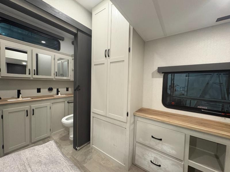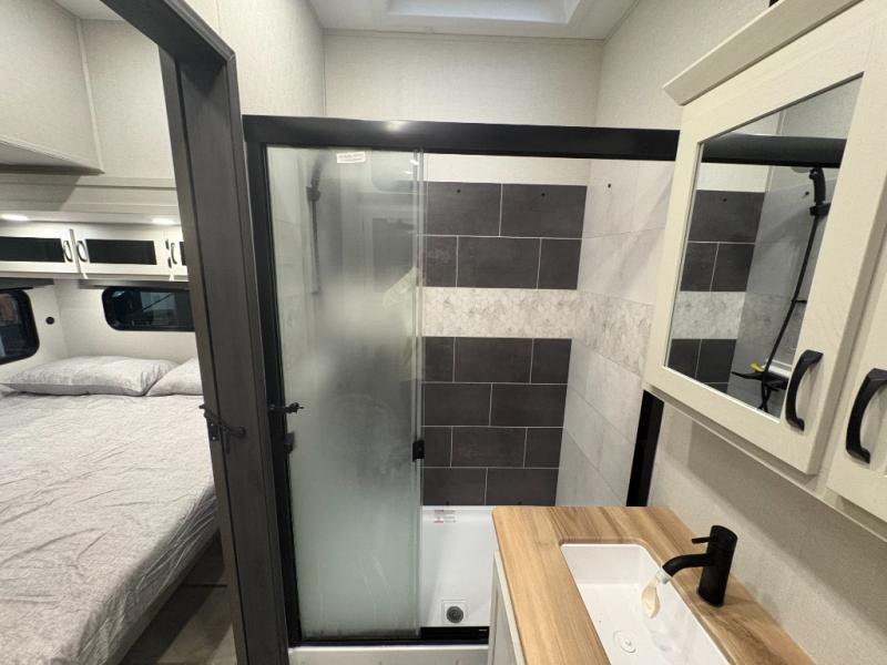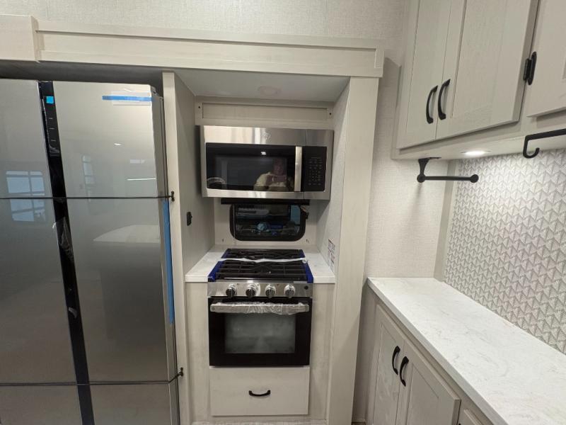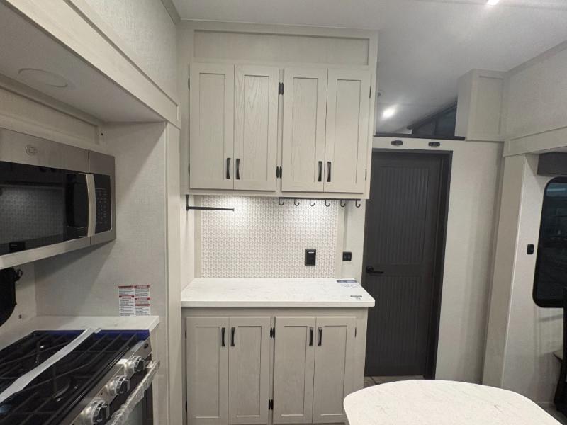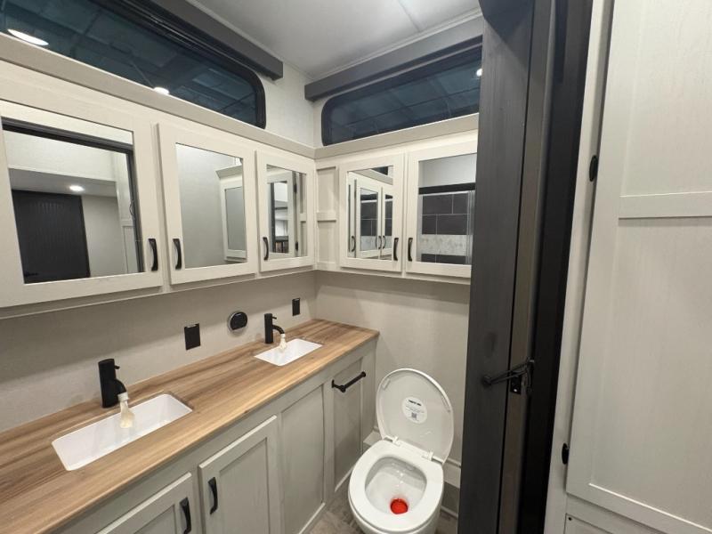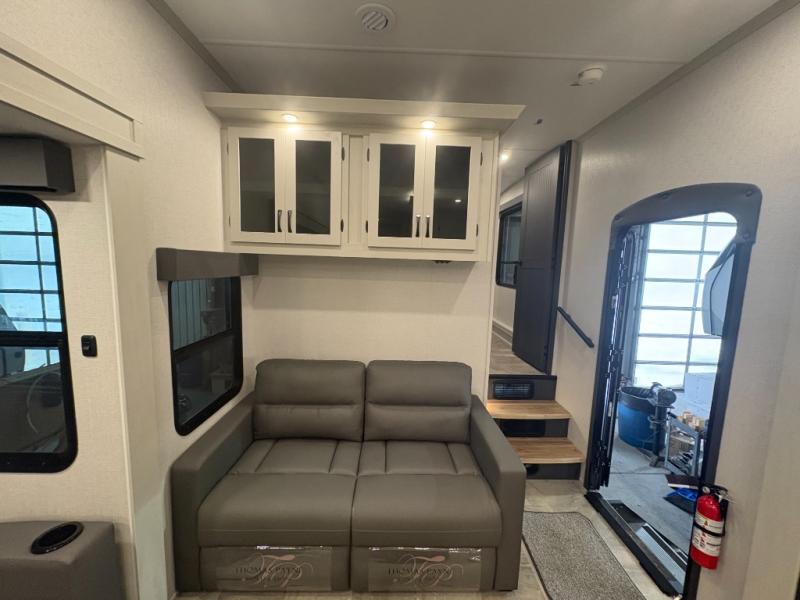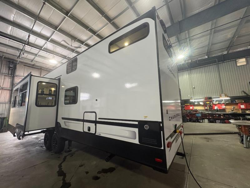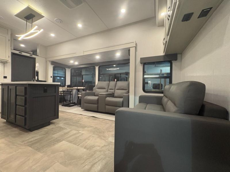 Each Chaparral mid-profile fifth wheel by Coachmen is designed with residential features, loads of storage space, and roomy bedroom suites to make you feel right at home. The durable construction means you can enjoy your RV for years to come. There's 6X double Azdel aluminum cage sidewall system, Weather Shield+ technology, and Tri-Tex powder coated frame technology that will help extend your camping season. Each model includes a Winegard Air 360+ HDTV/radio dome antenna to help keep you connected as you camp, slow rise blackout roller night shades, a new 16 cu. ft. side-by-side stainless glass 12V refrigerator, and a modern electric fireplace to make your space cozy. There is also a large transom window in the kitchen, a modern high-rise faucet, LED motion sensor lights in the bathroom, plus a full-size shower with glass doors and a seat. Now that's what I call luxury! Choose a Chaparral fifth wheel today!