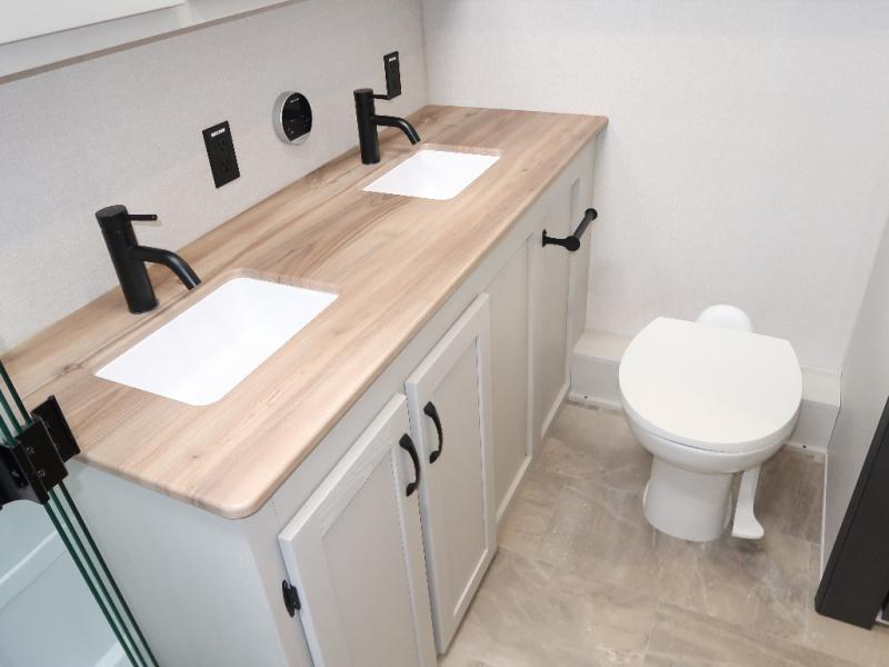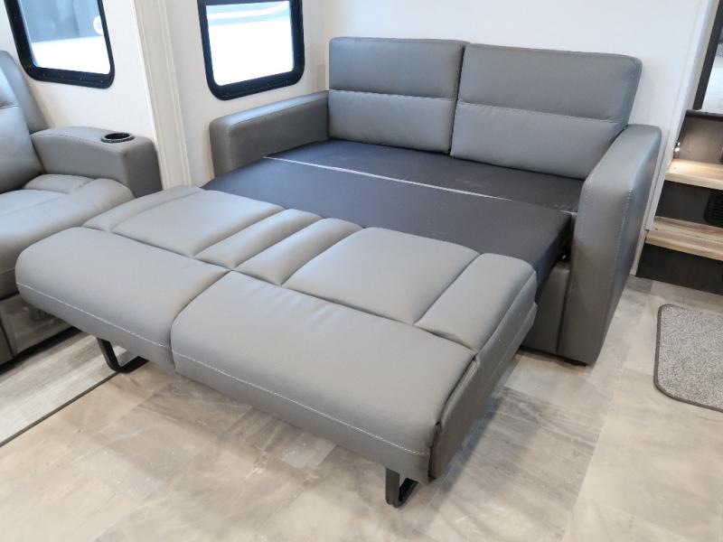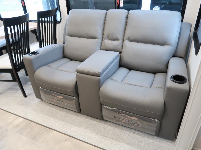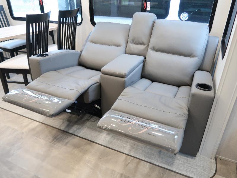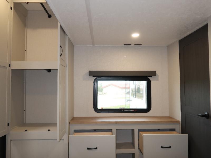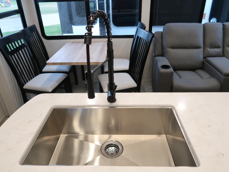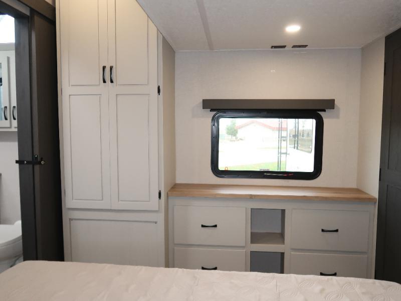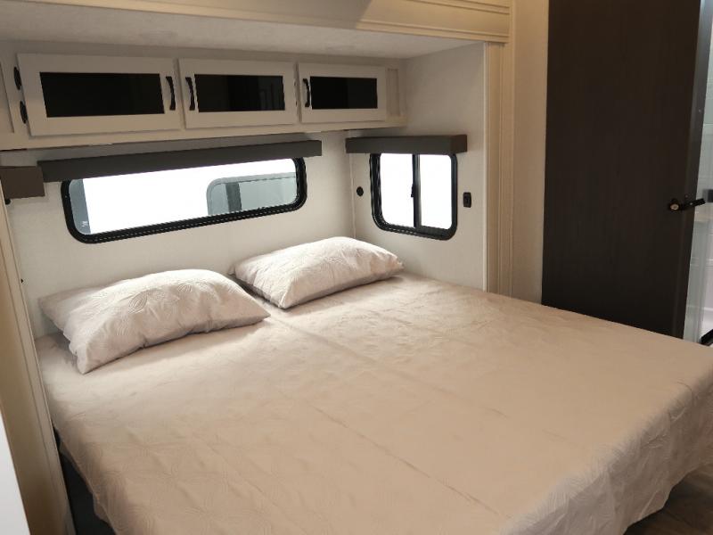 Each Chaparral mid-profile fifth wheel by Coachmen is designed with residential features, loads of storage space, and roomy bedroom suites to make you feel right at home. The durable construction means you can enjoy your RV for years to come. There's 6X double Azdel aluminum cage sidewall system, Weather Shield+ technology, and Tri-Tex powder coated frame technology that will help extend your camping season. Each model includes a Winegard Air 360+ HDTV/radio dome antenna to help keep you connected as you camp, slow rise blackout roller night shades, a new 16 cu. ft. side-by-side stainless glass 12V refrigerator, and a modern electric fireplace to make your space cozy. There is also a large transom window in the kitchen, a modern high-rise faucet, LED motion sensor lights in the bathroom, plus a full-size shower with glass doors and a seat. Now that's what I call luxury! Choose a Chaparral fifth wheel today!