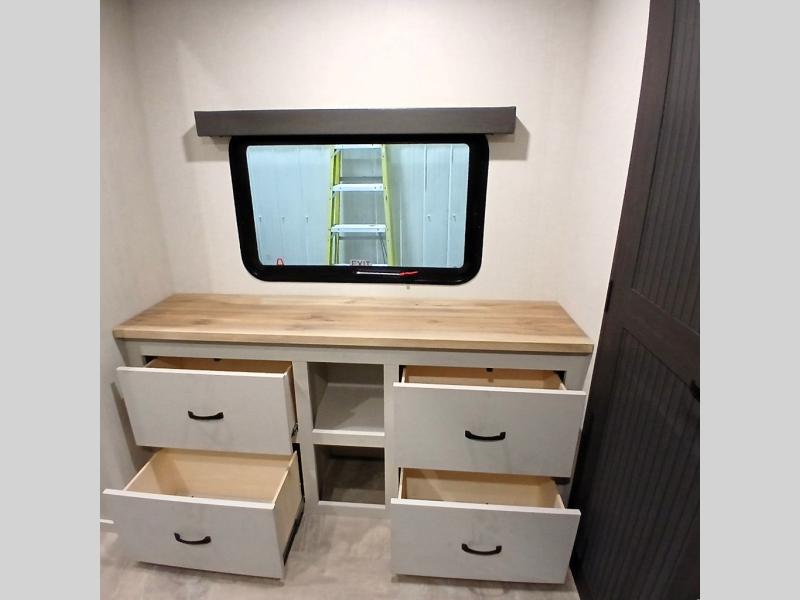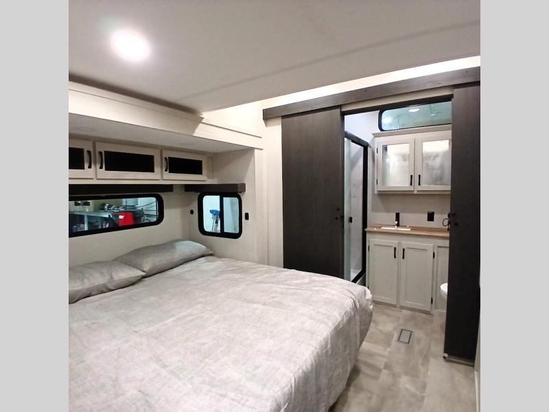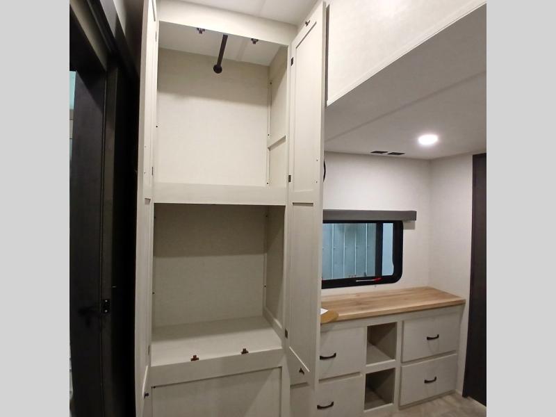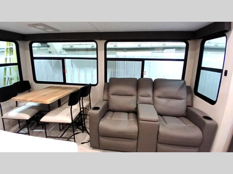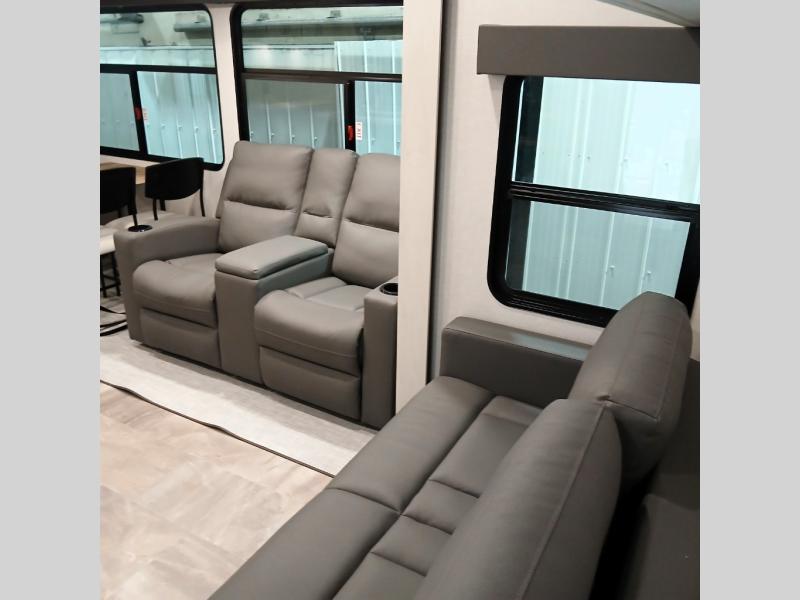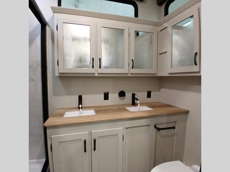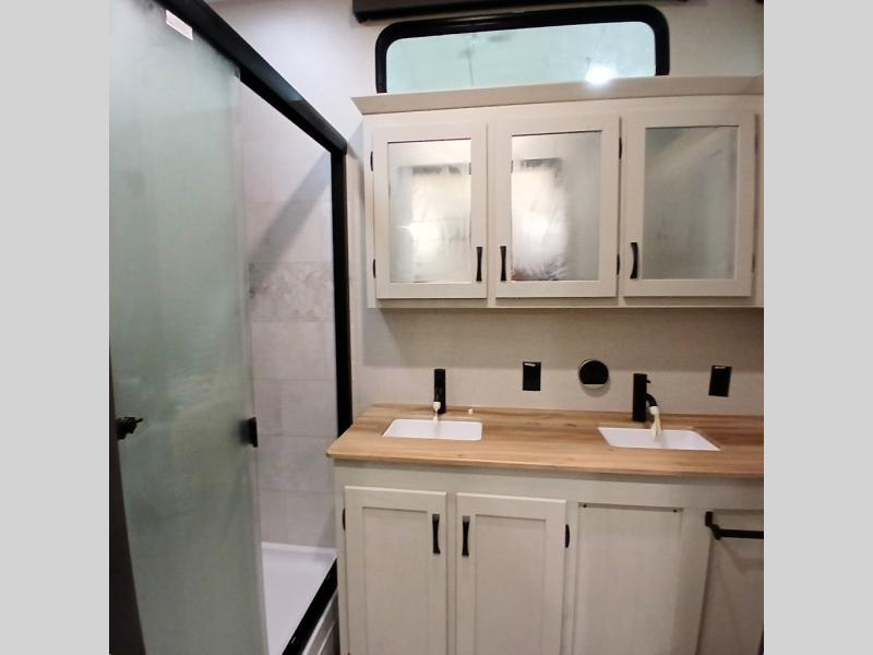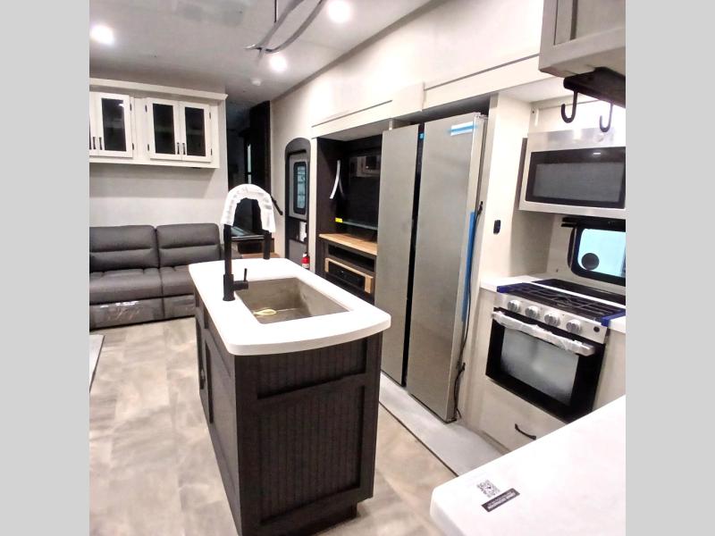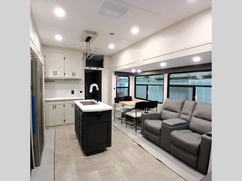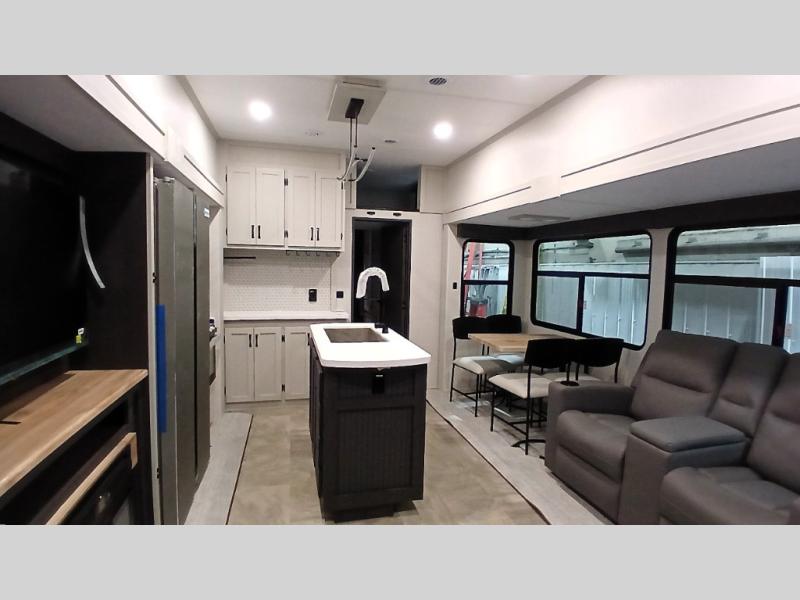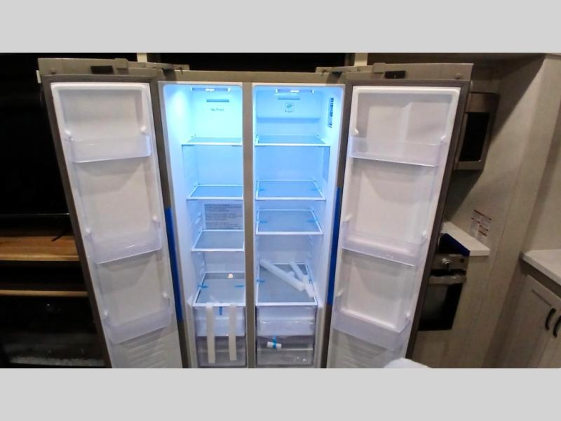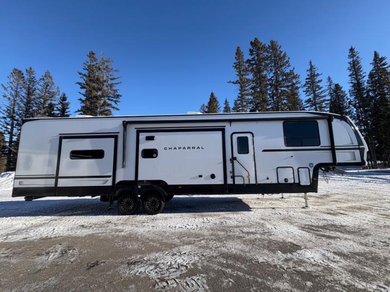 Each Chaparral mid-profile fifth wheel by Coachmen is designed with residential features, loads of storage space, and roomy bedroom suites to make you feel right at home. The durable construction means you can enjoy your RV for years to come. There's 6X double Azdel aluminum cage sidewall system, Weather Shield+ technology, and Tri-Tex powder coated frame technology that will help extend your camping season. Each model includes a Winegard Air 360+ HDTV/radio dome antenna to help keep you connected as you camp, slow rise blackout roller night shades, a new 16 cu. ft. side-by-side stainless glass 12V refrigerator, and a modern electric fireplace to make your space cozy. There is also a large transom window in the kitchen, a modern high-rise faucet, LED motion sensor lights in the bathroom, plus a full-size shower with glass doors and a seat. Now that's what I call luxury! Choose a Chaparral fifth wheel today!