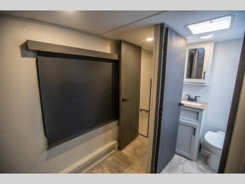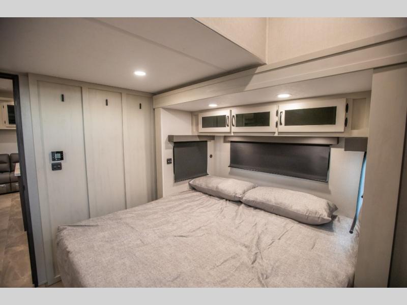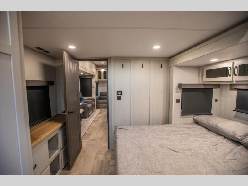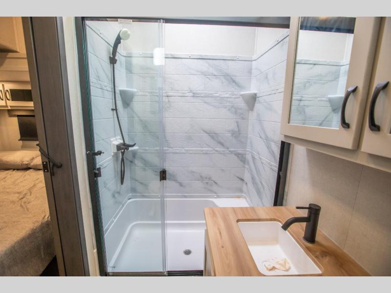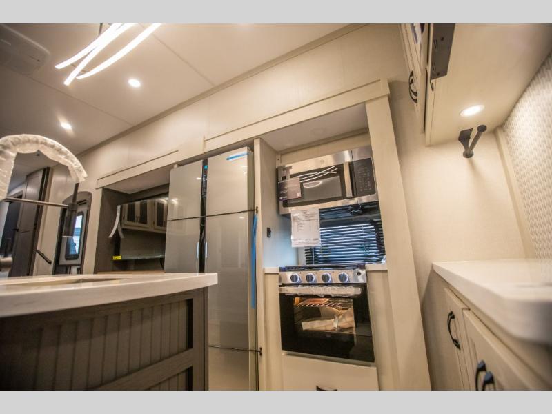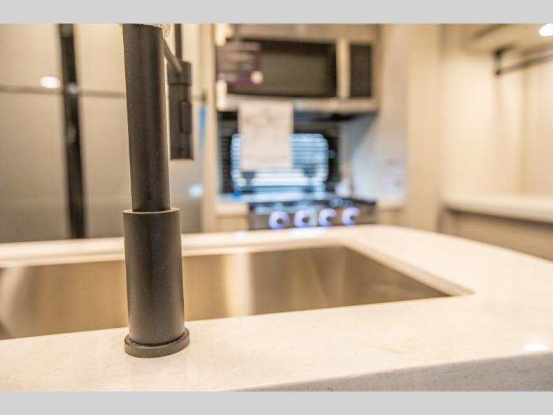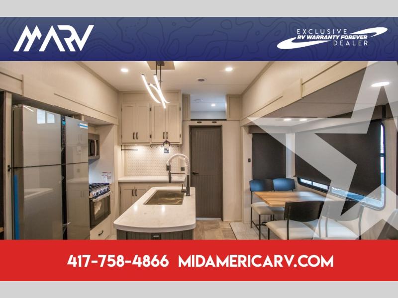 The Tri-Tex™ powder coated frame technology is up to 5X more weather resistant, and the Equa-Flex® suspension with 1/2" thick anodized shackles, bronze bushings, and greasable Zerk® fittings will make towing easier than ever. There is also a Solar Source +™ package with an upgraded 200W roof-mounted solar panel, along with an upgraded lithium-ready converter and 30AMP charge controller by Rich Solar® to support off-grid capability. To top it off, the 6X™ Double Azdel® aluminum cage sidewall system helps deliver a strong, vacuum-bonded build, while the upgraded Carbon & Walnut entertainment center with JBL® soundbar adds a premium touch. Now that's what I call luxury! Choose a Chaparral fifth wheel today!
