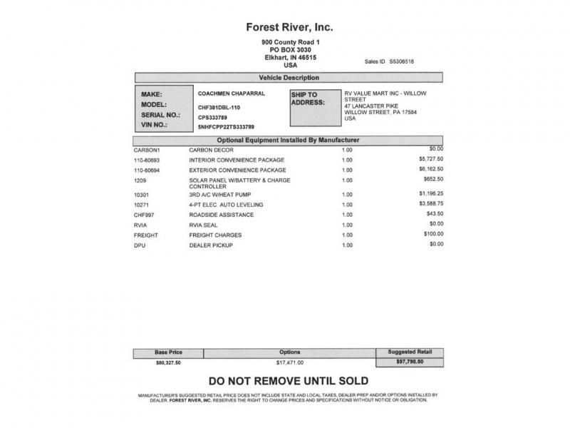 Coachmen RV Chaparral Mid-Profile fifth wheel 381DBL highlights: