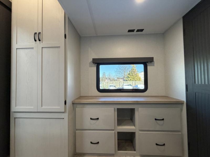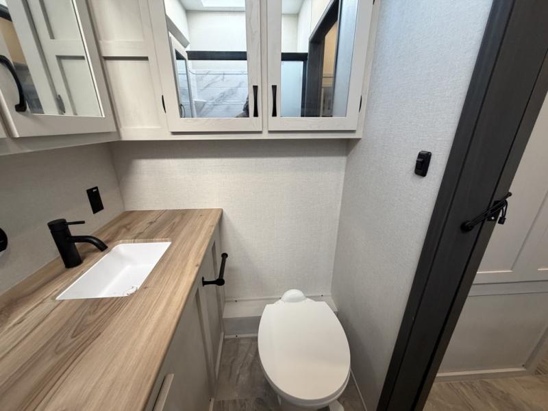 Each Chaparral mid-profile fifth wheel by Coachmen is designed with residential features, loads of storage space, and roomy bedroom suites to make you feel right at home. The durable construction means you can enjoy your RV for years to come. There's 6X double Azdel aluminum cage sidewall system, Weather Shield+ technology, and Tri-Tex powder coated frame technology that will help extend your camping season. Each model includes a Winegard Air 360+ HDTV/radio dome antenna to help keep you connected as you camp, slow rise blackout roller night shades, a new 16 cu. ft. side-by-side stainless glass 12V refrigerator, and a modern electric fireplace to make your space cozy. There is also a large transom window in the kitchen, a modern high-rise faucet, LED motion sensor lights in the bathroom, plus a full-size shower with glass doors and a seat. Now that's what I call luxury! Choose a Chaparral fifth wheel today!