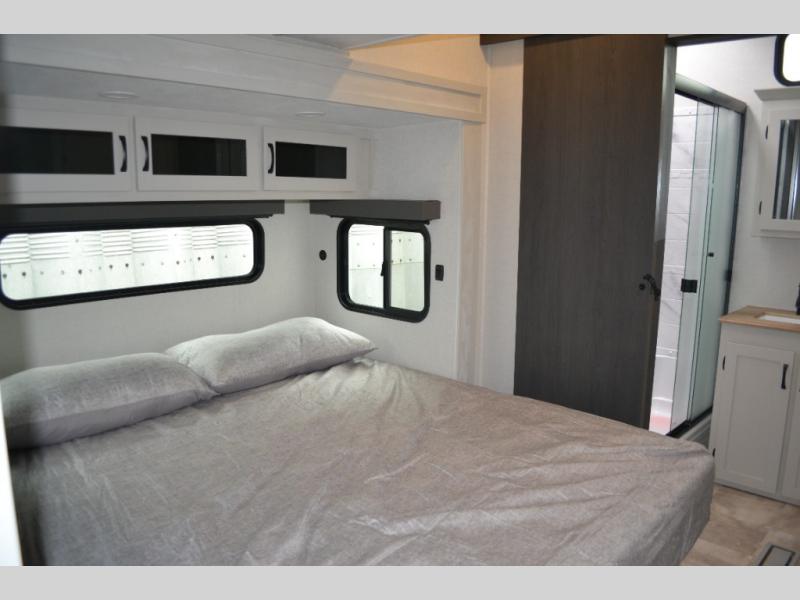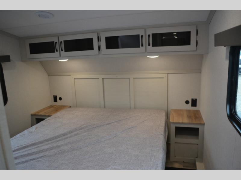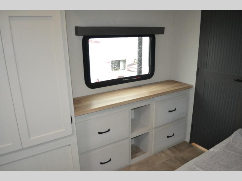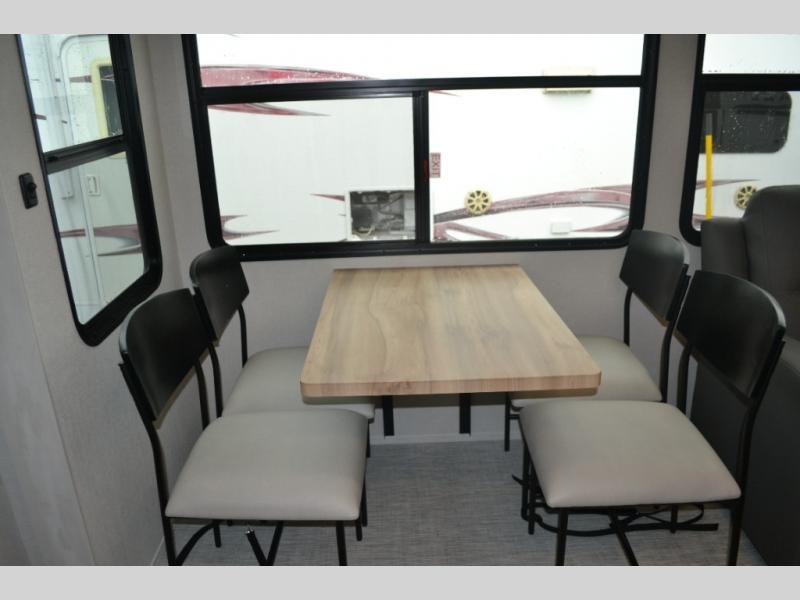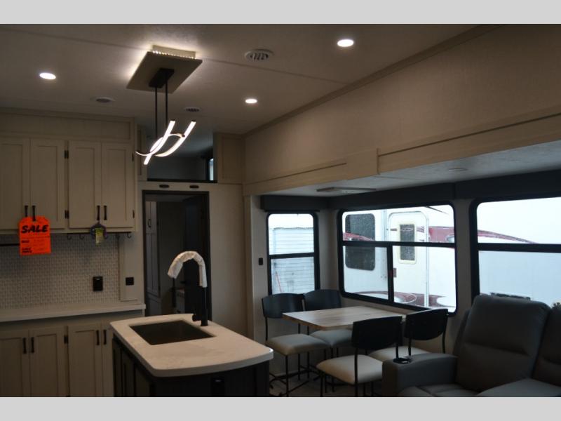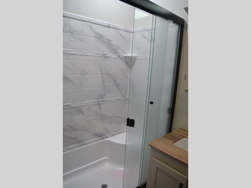 The Tri-Tex™ powder coated frame technology is up to 5X more weather resistant, and the Equa-Flex® suspension with 1/2" thick anodized shackles, bronze bushings, and greasable Zerk® fittings will make towing easier than ever. There is also a Solar Source +™ package with an upgraded 200W roof-mounted solar panel, along with an upgraded lithium-ready converter and 30AMP charge controller by Rich Solar® to support off-grid capability. To top it off, the 6X™ Double Azdel® aluminum cage sidewall system helps deliver a strong, vacuum-bonded build, while the upgraded Carbon & Walnut entertainment center with JBL® soundbar adds a premium touch. Now that's what I call luxury! Choose a Chaparral fifth wheel today!