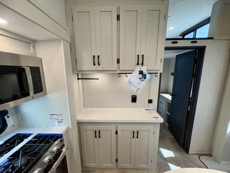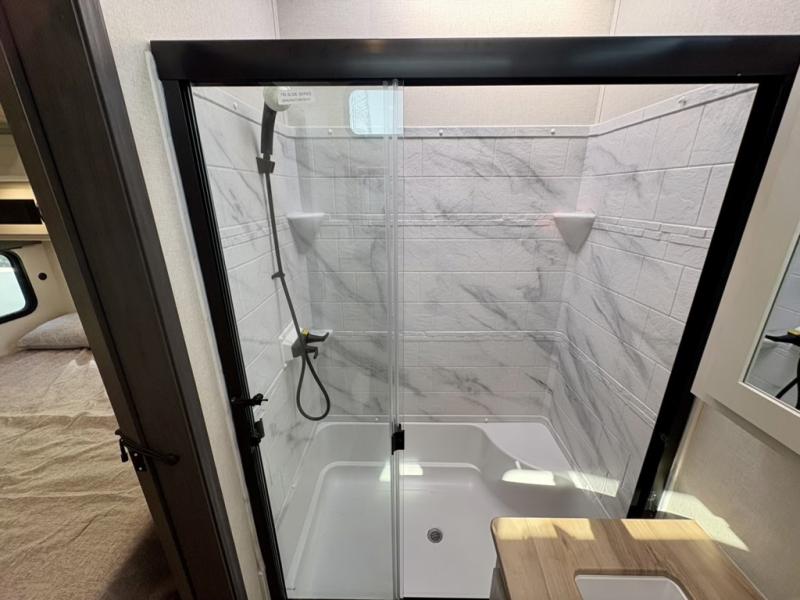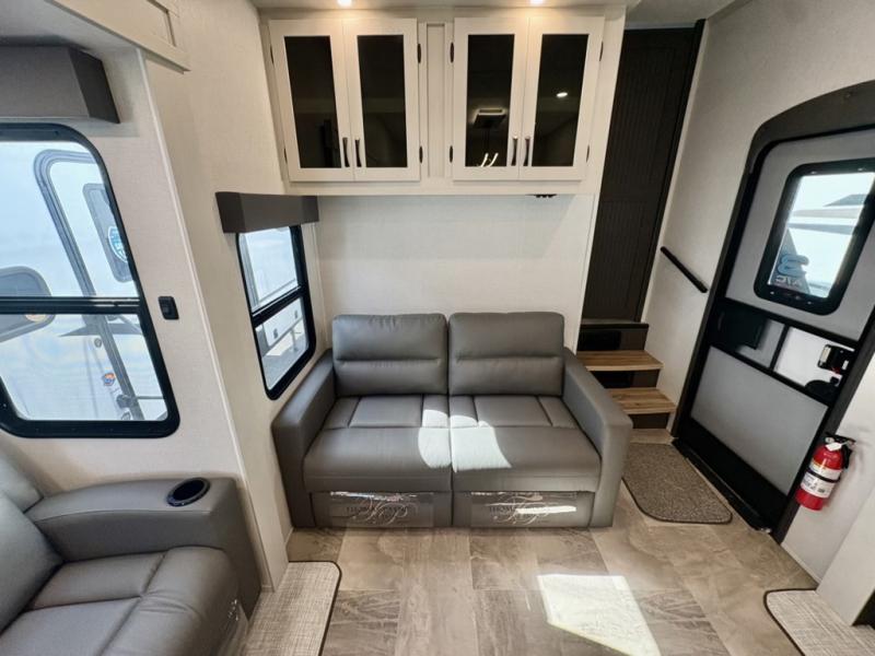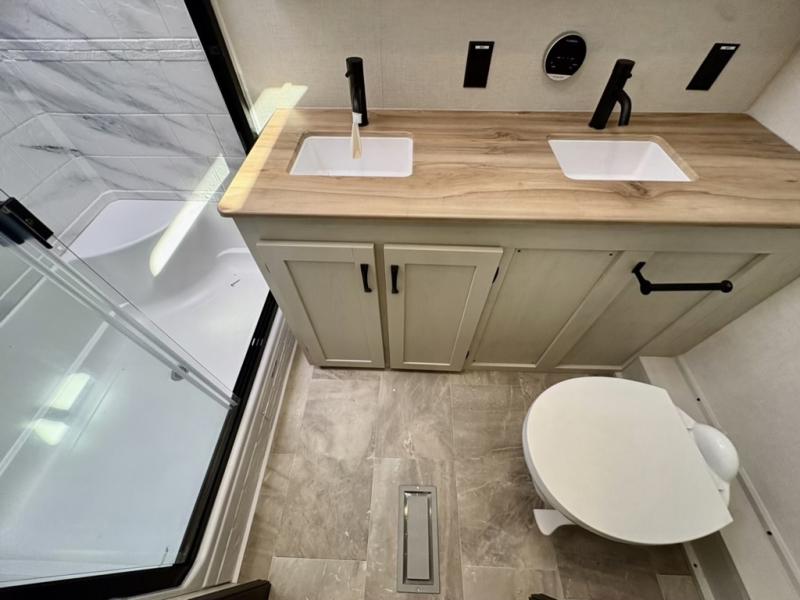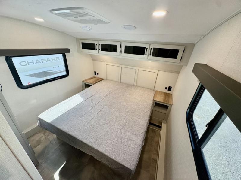 The Tri-Tex™ powder coated frame technology is up to 5X more weather resistant, and the Equa-Flex® suspension with 1/2" thick anodized shackles, bronze bushings, and greasable Zerk® fittings will make towing easier than ever. There is also a Solar Source +™ package with an upgraded 200W roof-mounted solar panel, along with an upgraded lithium-ready converter and 30AMP charge controller by Rich Solar® to support off-grid capability. To top it off, the 6X™ Double Azdel® aluminum cage sidewall system helps deliver a strong, vacuum-bonded build, while the upgraded Carbon & Walnut entertainment center with JBL® soundbar adds a premium touch. Now that's what I call luxury! Choose a Chaparral fifth wheel today!