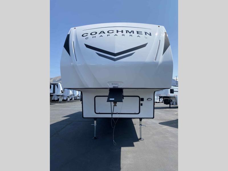 Comfort, convenience, and an easy haul is what you will find with each one of these Coachmen RV Chaparral Lite fifth wheels! Their Tri-Tex powder coated frame technology is up to 5X more weather resistant, and the dual-sided Azdel composite sidewall panels are ultra durable. The Road Armor suspension by Trail Air comes with heavy duty shackles and wet bolts so you can be sure it will hold up through every adventure, and you might want to add the exterior back-up and sideview camera prep for easy parking. You will feel right at home inside with slow rise blackout roller night shades, an upgraded Carbon and Walnut entertainment center, a modern high-rise kitchen faucet, and many more comforts! The exterior is just as inviting with its electric awning with LED lights, Solid Step entry steps, and pass-through storage for all your gear!
