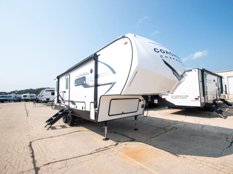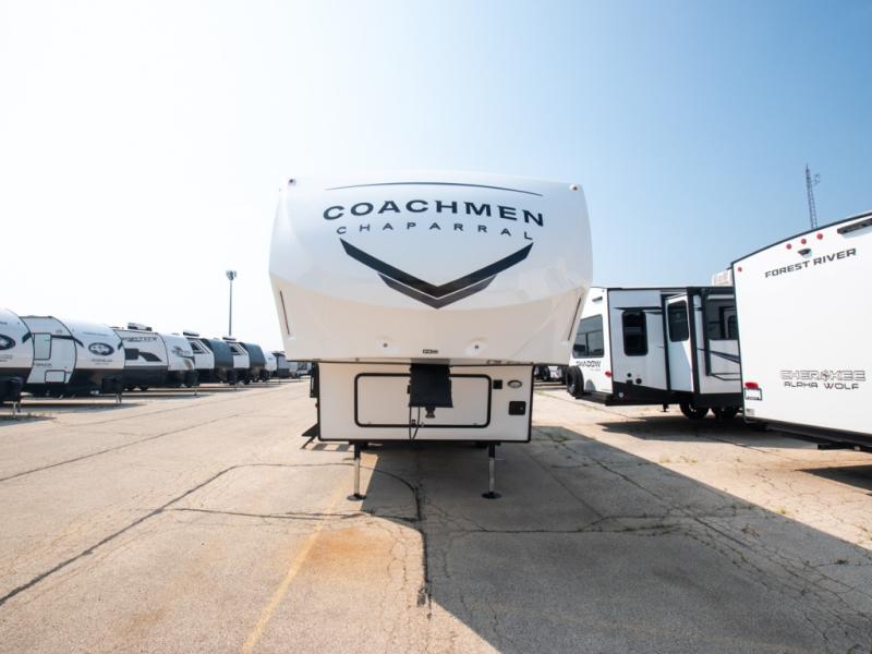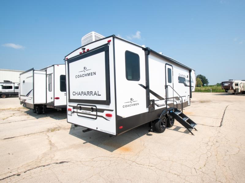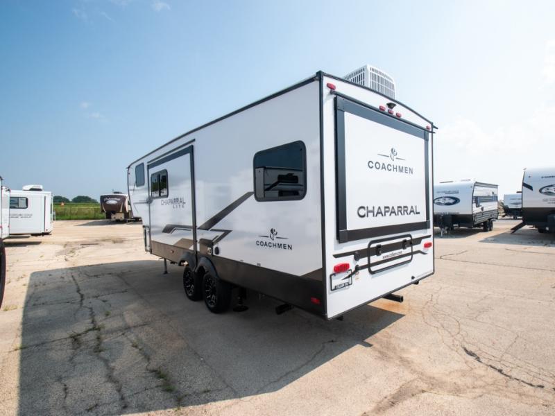 Comfort, convenience, and an easy haul is what you will find with each one of these Coachmen RV Chaparral Lite fifth wheels! Their Tri-Tex powder coated frame technology is up to 5X more weather resistant, and the dual-sided Azdel composite sidewall panels are ultra durable. The Equa-Flex suspension provides hassle-free towing, and you might want to add the exterior back-up and sideview camera prep for easy parking. You will feel right at home inside with slow rise blackout roller night shades, an upgraded Carbon and Walnut entertainment center, a modern high-rise kitchen faucet, and many more comforts! The exterior is just as inviting with its electric awning with LED lights, MORryde StepAbove entry steps, and pass-through storage for all your gear!