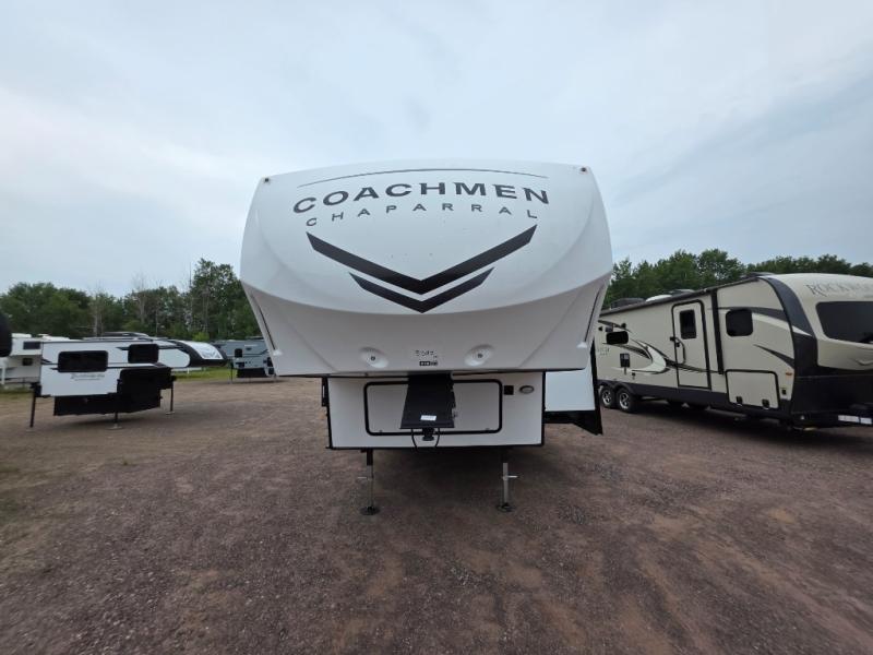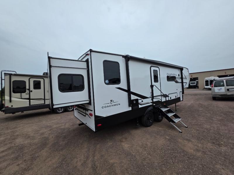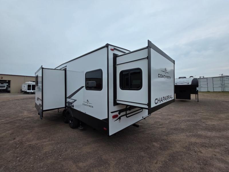 Comfort, convenience, and an easy haul is what you will find with each one of these Coachmen RV Chaparral Lite fifth wheels! Their Tri-Tex powder coated frame technology is up to 5X more weather resistant, and the dual-sided Azdel composite sidewall panels are ultra durable. The Equa-Flex suspension provides hassle-free towing, and you might want to add the exterior back-up and sideview camera prep for easy parking. You will feel right at home inside with slow rise blackout roller night shades, an upgraded Carbon and Walnut entertainment center, a modern high-rise kitchen faucet, and many more comforts! The exterior is just as inviting with its electric awning with LED lights, MORryde StepAbove entry steps, and pass-through storage for all your gear!