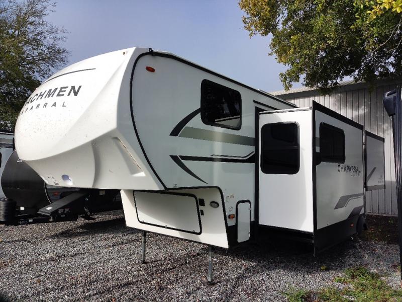 Comfort, convenience, and an easy haul is what you will find with each one of these Coachmen RV Chaparral Lite fifth wheels! Their Tri-Tex powder coated frame technology is up to 5X more weather resistant, and the dual-sided Azdel composite sidewall panels are ultra durable. The Equa-Flex suspension provides hassle-free towing, and you might want to add the exterior back-up and sideview camera prep for easy parking. You will feel right at home inside with slow rise blackout roller night shades, an upgraded Carbon and Walnut entertainment center, a modern high-rise kitchen faucet, and many more comforts! The exterior is just as inviting with its electric awning with LED lights, MORryde StepAbove entry steps, and pass-through storage for all your gear!