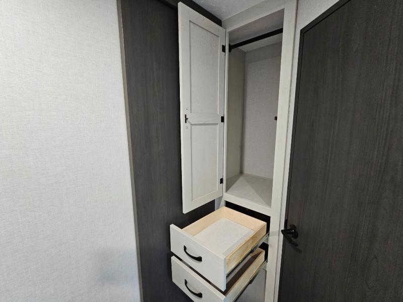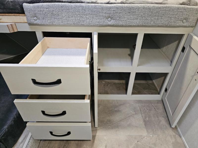 Queen bed slide opens up the rear bedroom for additional floor space.