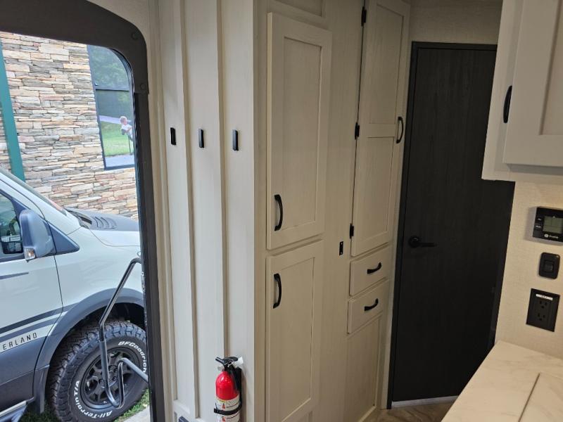 Pantry and cabinetry for storing dry goods and kitchen essentials.