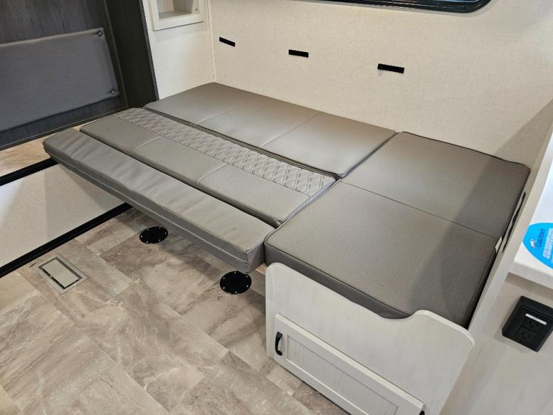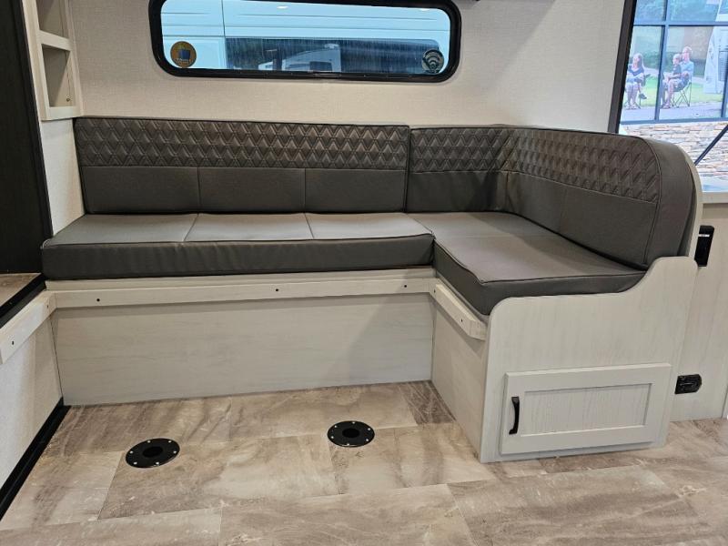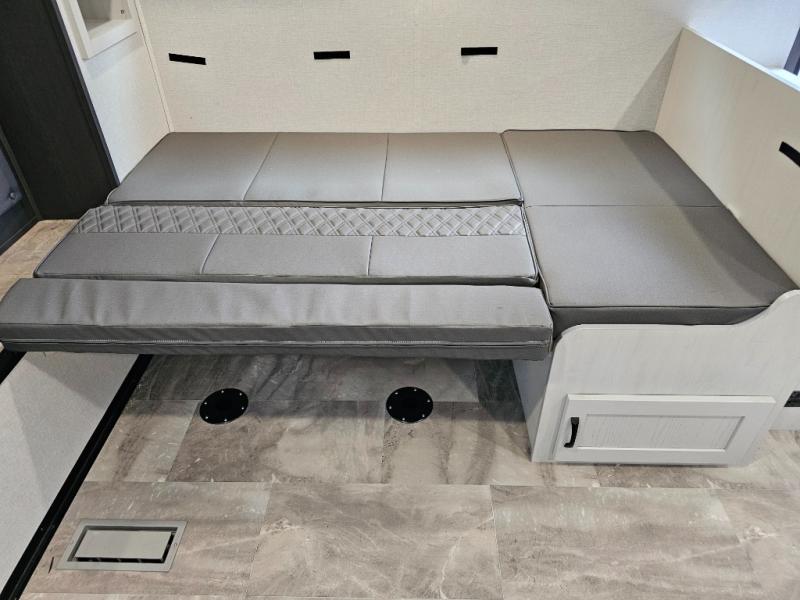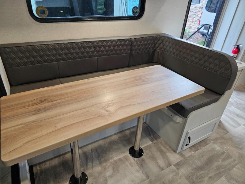 J-lounge dinette with bench seating and table — great for dining, games, or extra sleeping space.