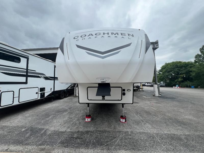 Comfort, convenience, and an easy haul is what you will find with each one of these Coachmen RV Chaparral Lite fifth wheels! Their Tri-Tex powder coated frame technology is up to 5X more weather resistant, and the dual-sided Azdel composite sidewall panels are ultra durable. The Road Armor suspension by Trail Air comes with heavy duty shackles and wet bolts so you can be sure it will hold up through every adventure, and you might want to add the exterior back-up and sideview camera prep for easy parking. You will feel right at home inside with slow rise blackout roller night shades, an upgraded Carbon and Walnut entertainment center, a modern high-rise kitchen faucet, and many more comforts! The exterior is just as inviting with its electric awning with LED lights, Solid Step entry steps, and pass-through storage for all your gear!