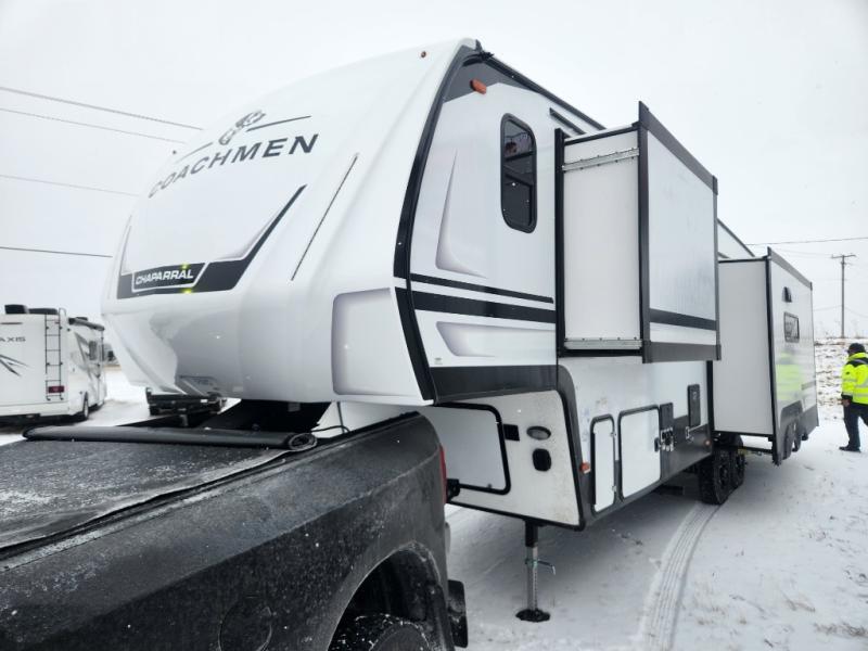 Comfort, convenience, and an easy haul is what you will find with each one of these Coachmen RV Chaparral Lite fifth wheels! Their Tri-Tex powder coated frame technology is up to 5X more weather resistant, and the dual-sided Azdel composite sidewall panels are ultra durable. The Equa-Flex suspension provides hassle-free towing, and you might want to add the exterior back-up and sideview camera prep for easy parking. You will feel right at home inside with slow rise blackout roller night shades, an upgraded Carbon and Walnut entertainment center, a modern high-rise kitchen faucet, and many more comforts! The exterior is just as inviting with its electric awning with LED lights, MORryde StepAbove entry steps, and pass-through storage for all your gear!