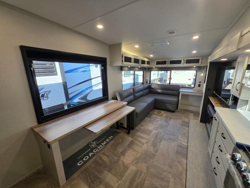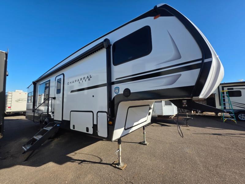 Comfort, convenience, and an easy haul is what you will find with each one of these Coachmen RV Chaparral Lite fifth wheels! Their Tri-Tex powder coated frame technology is up to 5X more weather resistant, and the dual-sided Azdel composite sidewall panels are ultra durable. The Equa-Flex suspension provides hassle-free towing, and you might want to add the exterior back-up and sideview camera prep for easy parking. You will feel right at home inside with slow rise blackout roller night shades, an upgraded Carbon and Walnut entertainment center, a modern high-rise kitchen faucet, and many more comforts! The exterior is just as inviting with its electric awning with LED lights, MORryde StepAbove entry steps, and pass-through storage for all your gear!