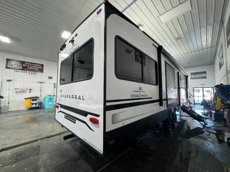Comfort, convenience, and an easy haul is what you will find with each one of these Coachmen RV Chaparral Lite fifth wheels! Their Tri-Tex powder coated frame technology is up to 5X more weather resistant, and the dual-sided Azdel composite sidewall panels are ultra durable. The Equa-Flex suspension provides hassle-free towing, and you might want to add the exterior back-up and sideview camera prep for easy parking. You will feel right at home inside with slow rise blackout roller night shades, an upgraded Carbon and Walnut entertainment center, a modern high-rise kitchen faucet, and many more comforts! The exterior is just as inviting with its electric awning with LED lights, MORryde StepAbove entry steps, and pass-through storage for all your gear!