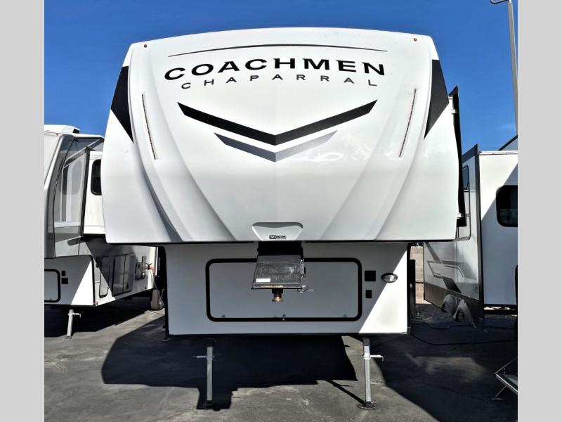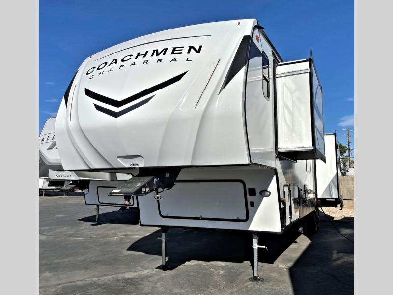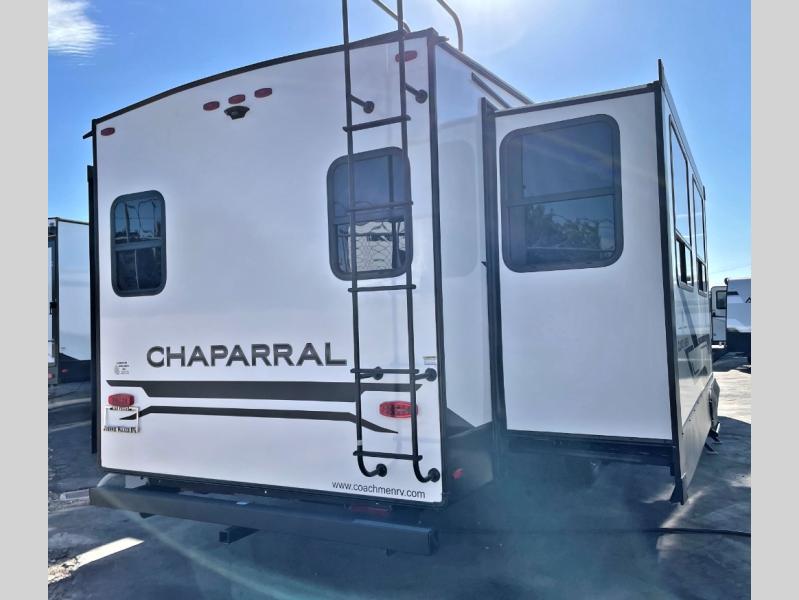 Comfort, convenience, and an easy haul is what you will find with each one of these Coachmen RV Chaparral Lite fifth wheels! Their Tri-Tex powder coated frame technology is up to 5X more weather resistant, and the dual-sided Azdel composite sidewall panels are ultra durable. The Road Armor suspension by Trail Air comes with heavy duty shackles and wet bolts so you can be sure it will hold up through every adventure, and you might want to add the exterior back-up and sideview camera prep for easy parking. You will feel right at home inside with slow rise blackout roller night shades, an upgraded Carbon and Walnut entertainment center, a modern high-rise kitchen faucet, and many more comforts! The exterior is just as inviting with its electric awning with LED lights, Solid Step entry steps, and pass-through storage for all your gear!