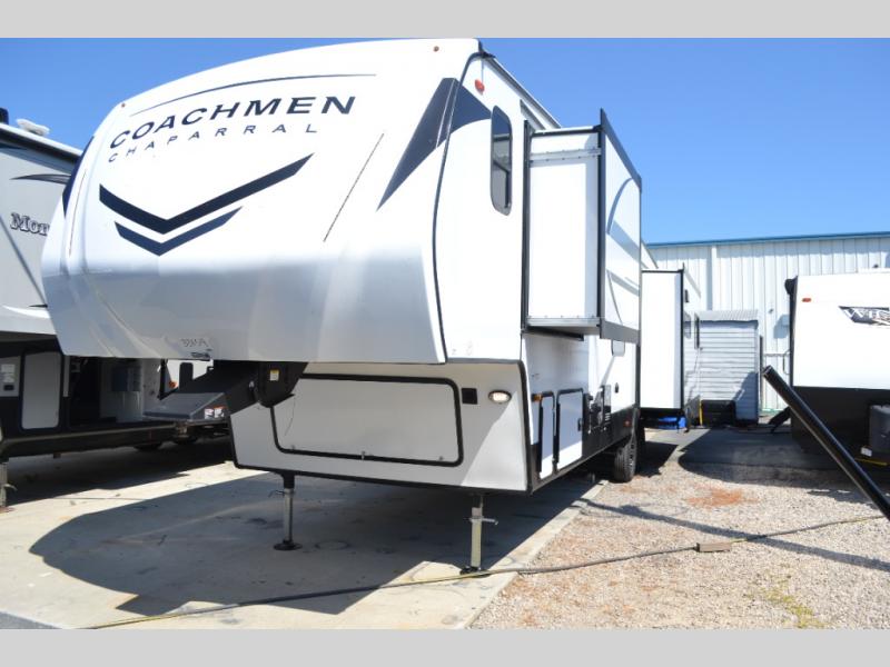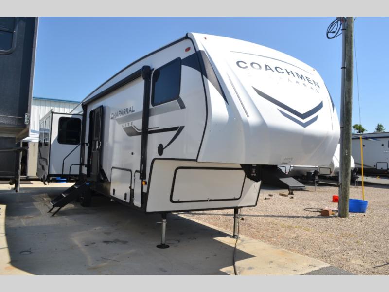 Comfort, convenience, and an easy haul is what you will find with each one of these Coachmen RV Chaparral Lite fifth wheels! Their Tri-Tex powder coated frame technology is up to 5X more weather resistant, and the dual-sided Azdel composite sidewall panels are ultra durable. The Road Armor suspension by Trail Air comes with heavy duty shackles and wet bolts so you can be sure it will hold up through every adventure, and you might want to add the exterior back-up and sideview camera prep for easy parking. You will feel right at home inside with slow rise blackout roller night shades, an upgraded Carbon and Walnut entertainment center, a modern high-rise kitchen faucet, and many more comforts! The exterior is just as inviting with its electric awning with LED lights, Solid Step entry steps, and pass-through storage for all your gear!