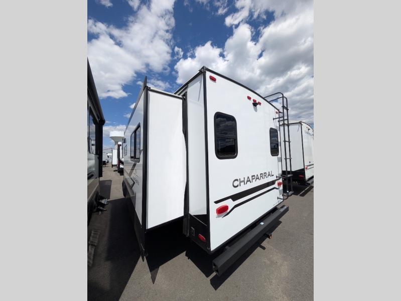 Comfort, convenience, and an easy haul is what you will find with each one of these Coachmen RV Chaparral Lite fifth wheels! Their Tri-Tex powder coated frame technology is up to 5X more weather resistant, and the dual-sided Azdel composite sidewall panels are ultra durable. The Road Armor suspension by Trail Air comes with heavy duty shackles and wet bolts so you can be sure it will hold up through every adventure, and you might want to add the exterior back-up and sideview camera prep for easy parking. You will feel right at home inside with slow rise blackout roller night shades, an upgraded Carbon and Walnut entertainment center, a modern high-rise kitchen faucet, and many more comforts! The exterior is just as inviting with its electric awning with LED lights, Solid Step entry steps, and pass-through storage for all your gear!