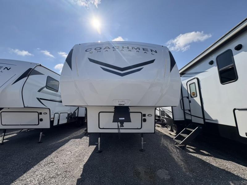 Comfort, convenience, and an easy haul is what you will find with each one of these Coachmen RV Chaparral Lite fifth wheels! Their Tri-Tex powder coated frame technology is up to 5X more weather resistant, and the dual-sided Azdel composite sidewall panels are ultra durable. The Road Armor suspension by Trail Air comes with heavy duty shackles and wet bolts so you can be sure it will hold up through every adventure, and you might want to add the exterior back-up and sideview camera prep for easy parking. You will feel right at home inside with slow rise blackout roller night shades, an upgraded Carbon and Walnut entertainment center, a modern high-rise kitchen faucet, and many more comforts! The exterior is just as inviting with its electric awning with LED lights, Solid Step entry steps, and pass-through storage for all your gear!