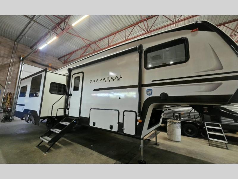 Comfort, convenience, and an easy haul is what you will find with each one of these Coachmen RV Chaparral Lite fifth wheels! Their Tri-Tex powder coated frame technology is up to 5X more weather resistant, and the dual-sided Azdel composite sidewall panels are ultra durable. The Equa-Flex suspension provides hassle-free towing, and you might want to add the exterior back-up and sideview camera prep for easy parking. You will feel right at home inside with slow rise blackout roller night shades, an upgraded Carbon and Walnut entertainment center, a modern high-rise kitchen faucet, and many more comforts! The exterior is just as inviting with its electric awning with LED lights, MORryde StepAbove entry steps, and pass-through storage for all your gear!