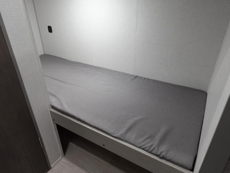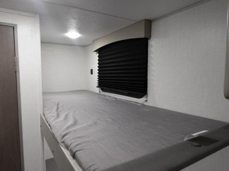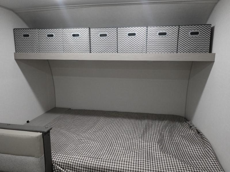 You can sleep five people in this Clipper 3K Series travel trailer with the 54" x 74" bed at the front, the booth dinette, and the 28" x 72" bunks. There is a private bathroom that everyone can use to stay clean, and the chef of the group can cook meals on the cooktop in the kitchen. There is a storage cabinet in the kitchen plus overhead cabinets for even more storage, and there is a pass-through exterior storage for larger gear. When it's raining outside, simply put out the 10' power awning for protection.