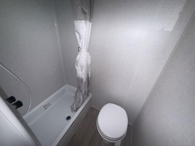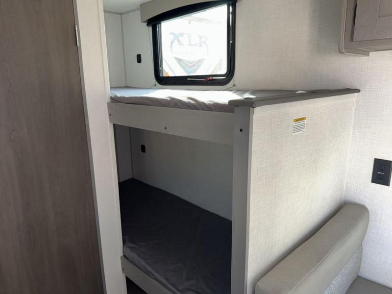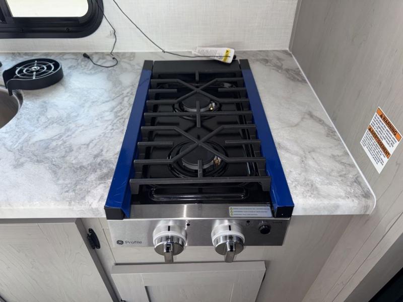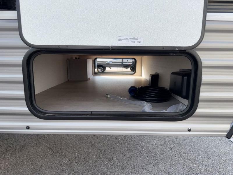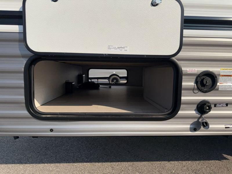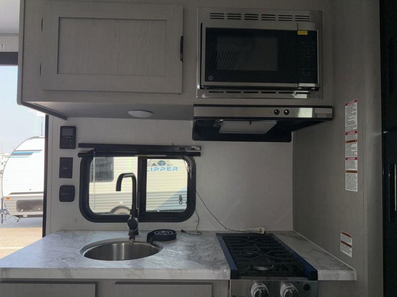 You can sleep five people in this Clipper 3K Series travel trailer with the 54" x 74" bed at the front, the booth dinette, and the 28" x 72" bunks. There is a private bathroom that everyone can use to stay clean, and the chef of the group can cook meals on the cooktop in the kitchen. There is a storage cabinet in the kitchen plus overhead cabinets for even more storage, and there is a pass-through exterior storage for larger gear. When it's raining outside, simply put out the 10' power awning for protection.