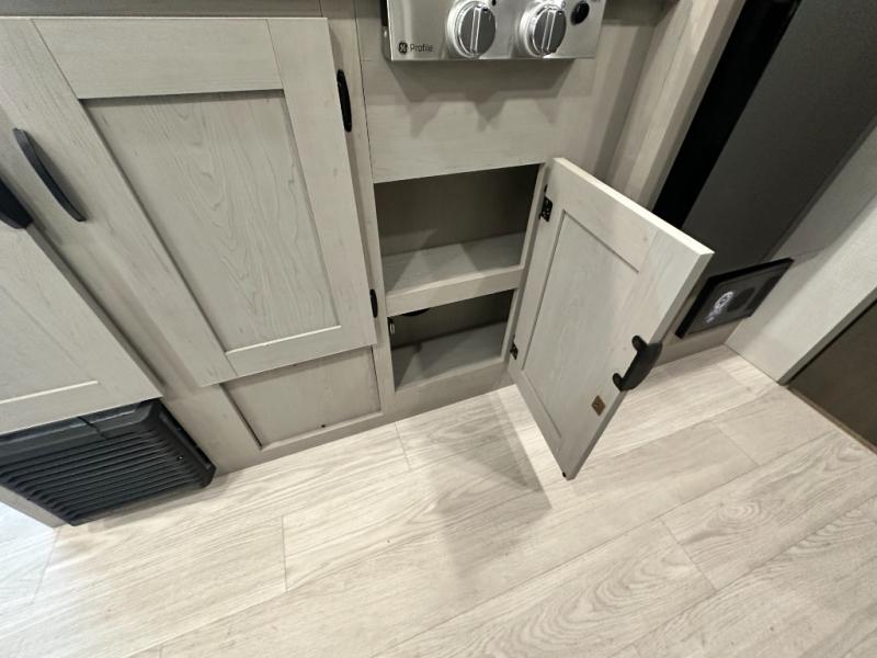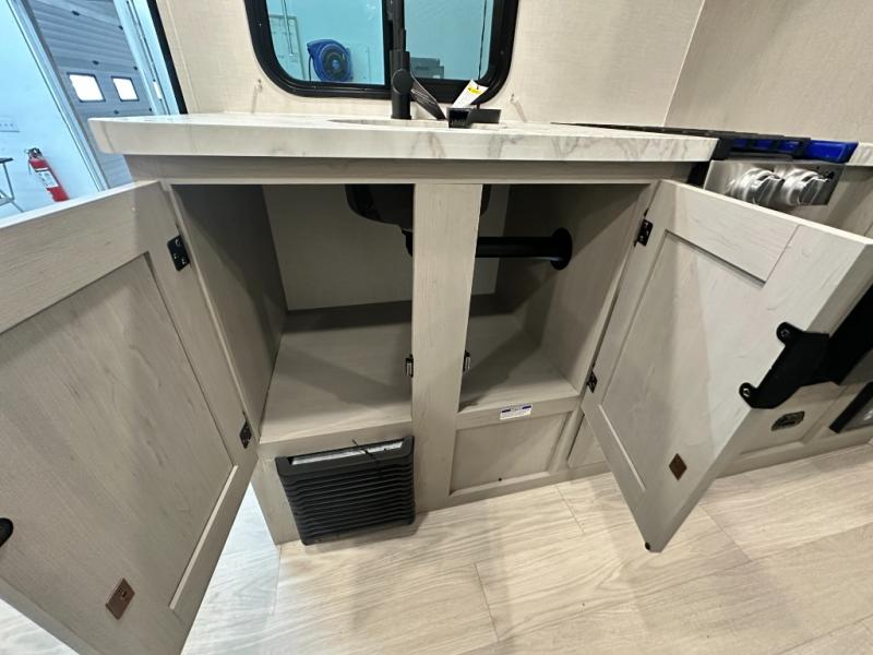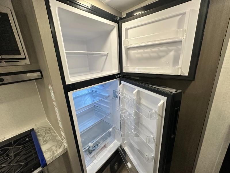 You can sleep five people in this Clipper 3K Series travel trailer with the 54" x 74" bed at the front, the booth dinette, and the 28" x 72" bunks. There is a private bathroom that everyone can use to stay clean, and the chef of the group can cook meals on the cooktop in the kitchen. There is a storage cabinet in the kitchen plus overhead cabinets for even more storage, and there is a pass-through exterior storage for larger gear. When it's raining outside, simply put out the 10' power awning for protection.
