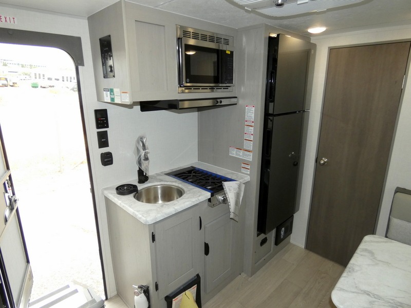 Enjoy every camping experience in this Clipper 3K Series trailer featuring a full rear bath including a 24" x 36" shower, toilet, and sink with overhead medicine cabinet. The queen bed up front will offer you a great night's sleep, and you will find ample storage for clothing in the bedside wardrobes, nightstands, and overhead shelf. Meals can easily be prepared using the cooktop, refrigerator and sink, and the booth dinette is a great place to enjoy your meals inside, or maybe you'd enjoy dining outside under the 10' patio awning.