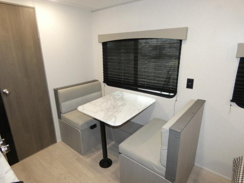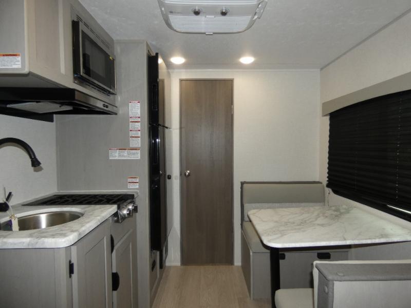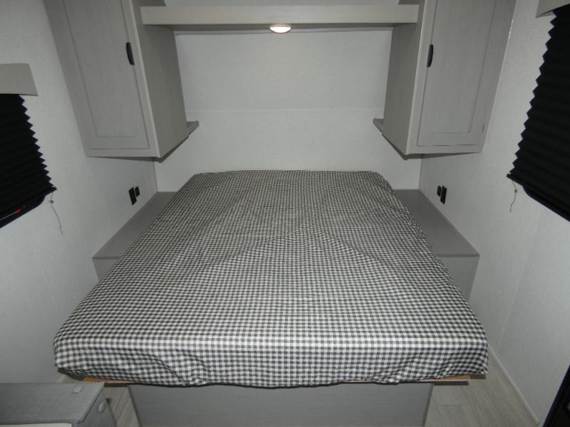 Enjoy every camping experience in this Clipper 3K Series trailer featuring a full rear bath including a 24" x 36" shower, toilet, and sink with overhead medicine cabinet. The queen bed up front will offer you a great night's sleep, and you will find ample storage for clothing in the bedside wardrobes, nightstands, and overhead shelf. Meals can easily be prepared using the cooktop, refrigerator and sink, and the booth dinette is a great place to enjoy your meals inside, or maybe you'd enjoy dining outside under the 10' patio awning.