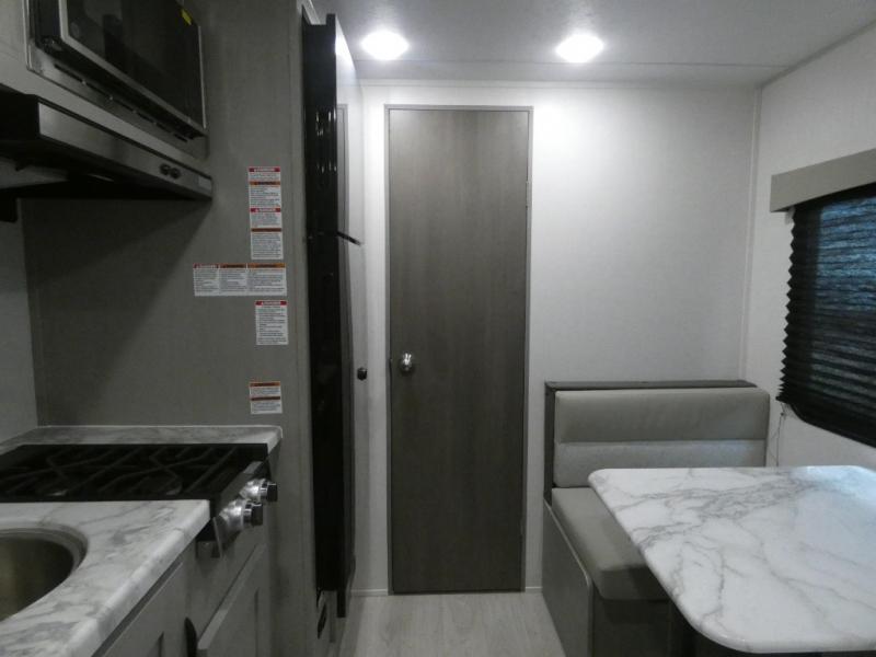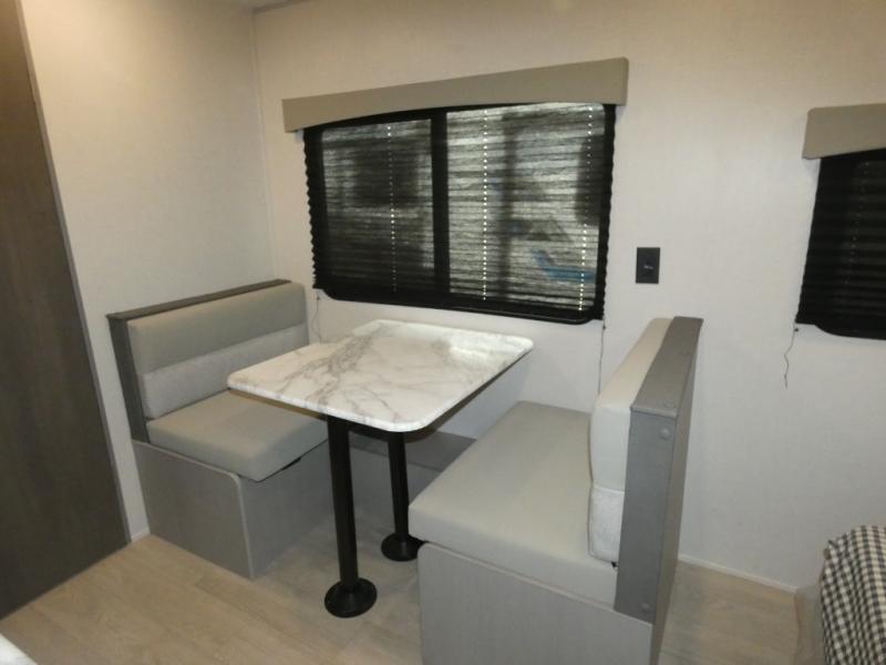 Enjoy every camping experience in this Clipper 3K Series trailer featuring a full rear bath including a 24" x 36" shower, toilet, and sink with overhead medicine cabinet. The queen bed up front will offer you a great night's sleep, and you will find ample storage for clothing in the bedside wardrobes, nightstands, and overhead shelf. Meals can easily be prepared using the cooktop, refrigerator and sink, and the booth dinette is a great place to enjoy your meals inside, or maybe you'd enjoy dining outside under the 10' patio awning.